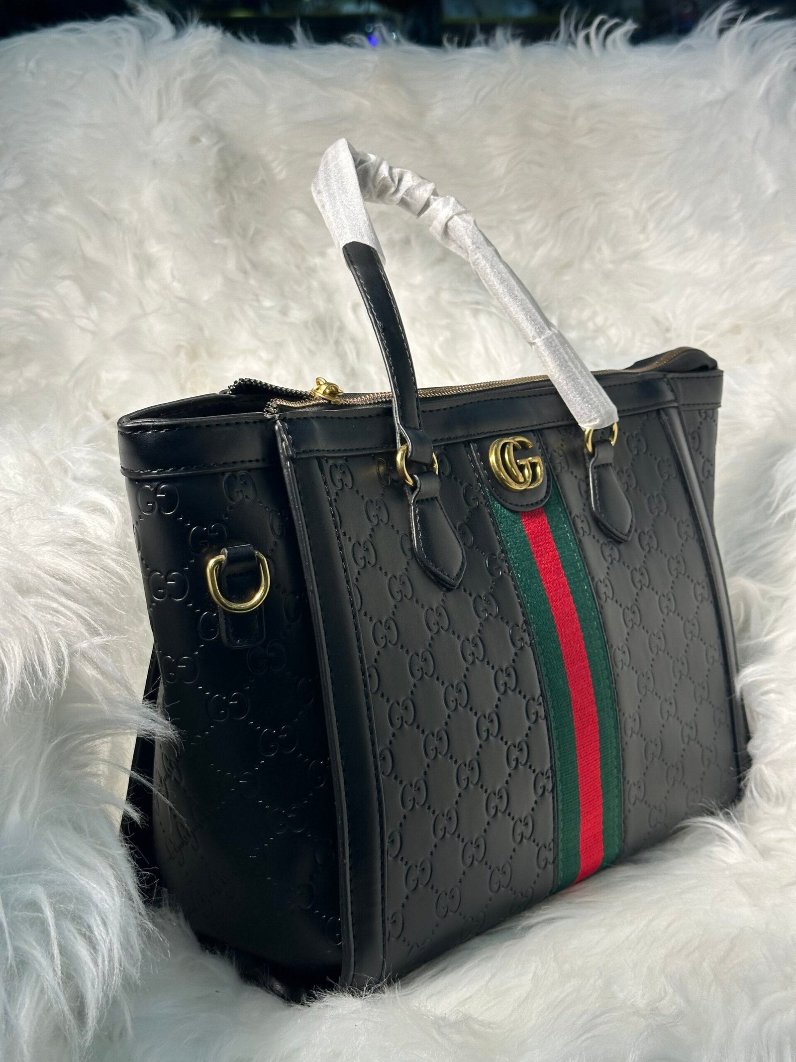 Beyond its beauty, the Black Gucci Bag is designed with practicality in mind. Its spacious interior provides ample room to organize your essentials, from your wallet and makeup to everyday items like phone and keys. The sleek and minimalistic design ensures versatility, making this bag suitable for both formal and casual occasions. Carry luxury and convenience wherever you go!