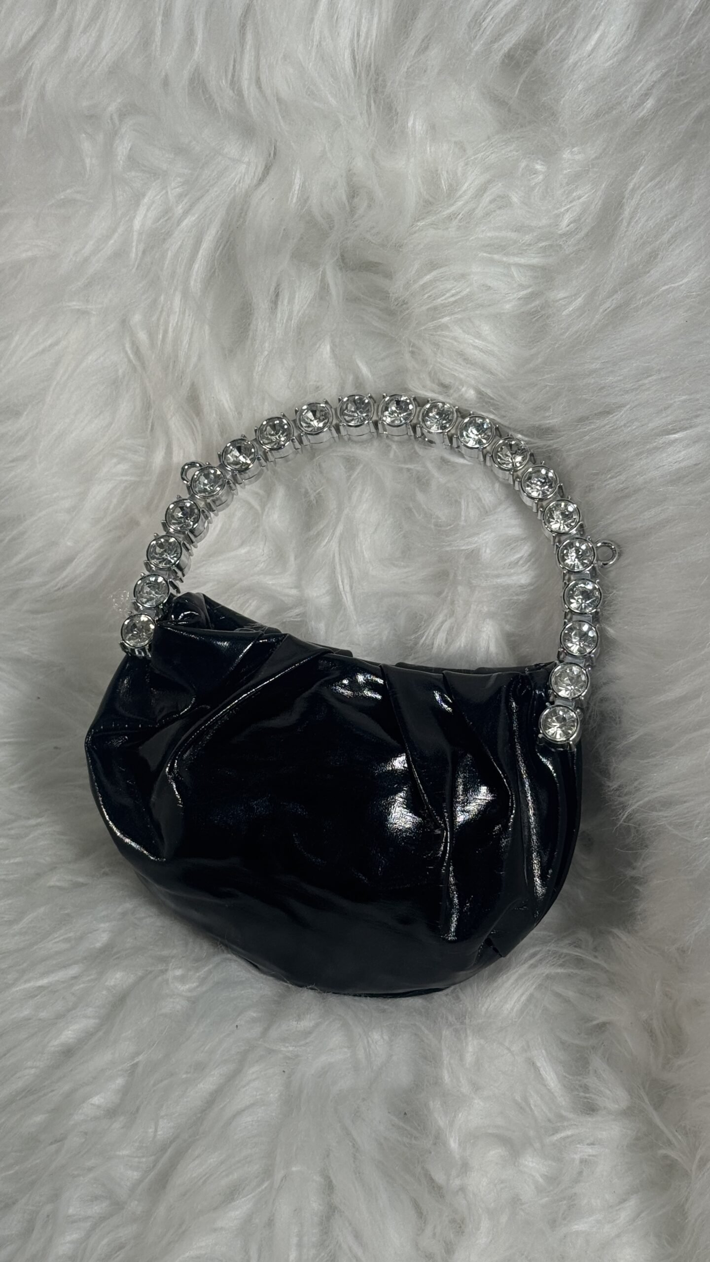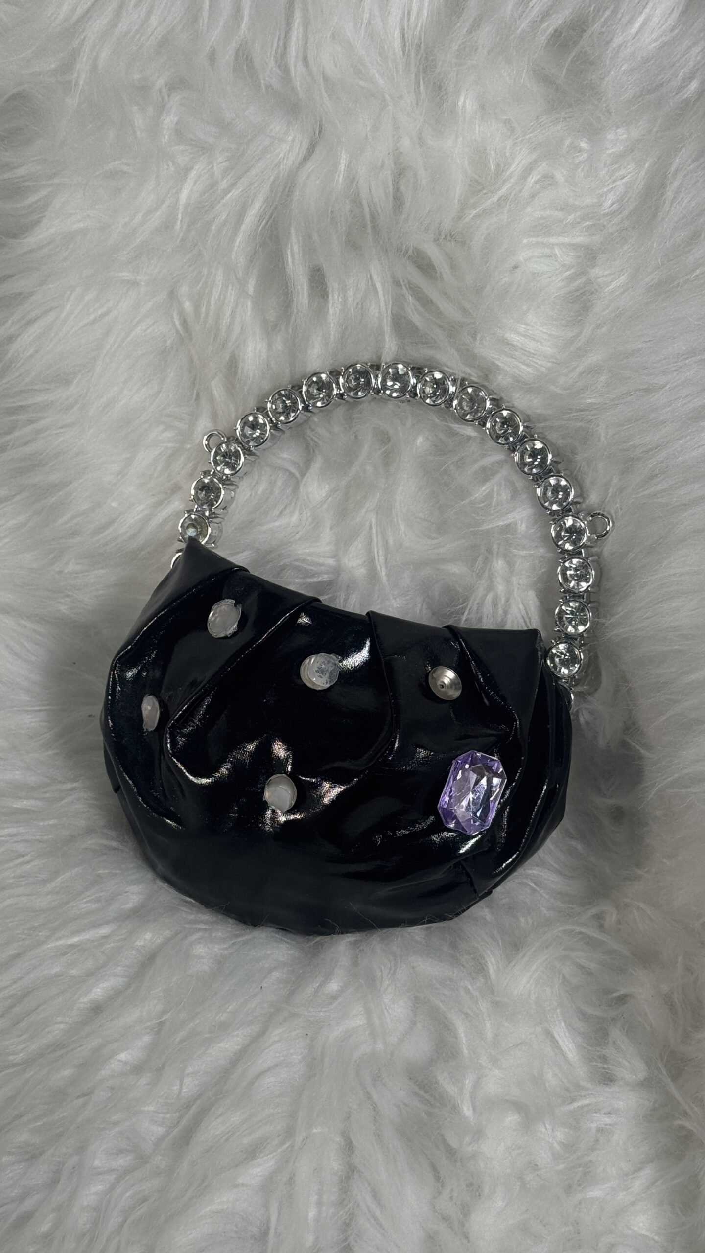 Introducing the black small handy bag, an indispensable accessory combining elegance with practicality. Made to cater to your everyday needs, this sleek bag is designed with compact dimensions that make it versatile for both casual outings and special occasions. The stylish stone embedding adds a touch of sophistication, making it a perfect blend of utility and aesthetics.