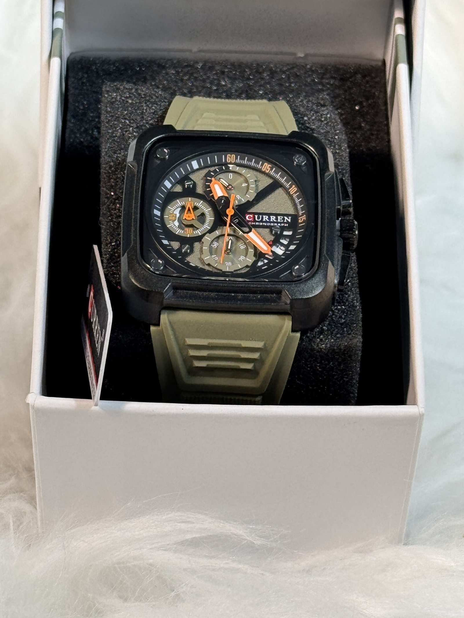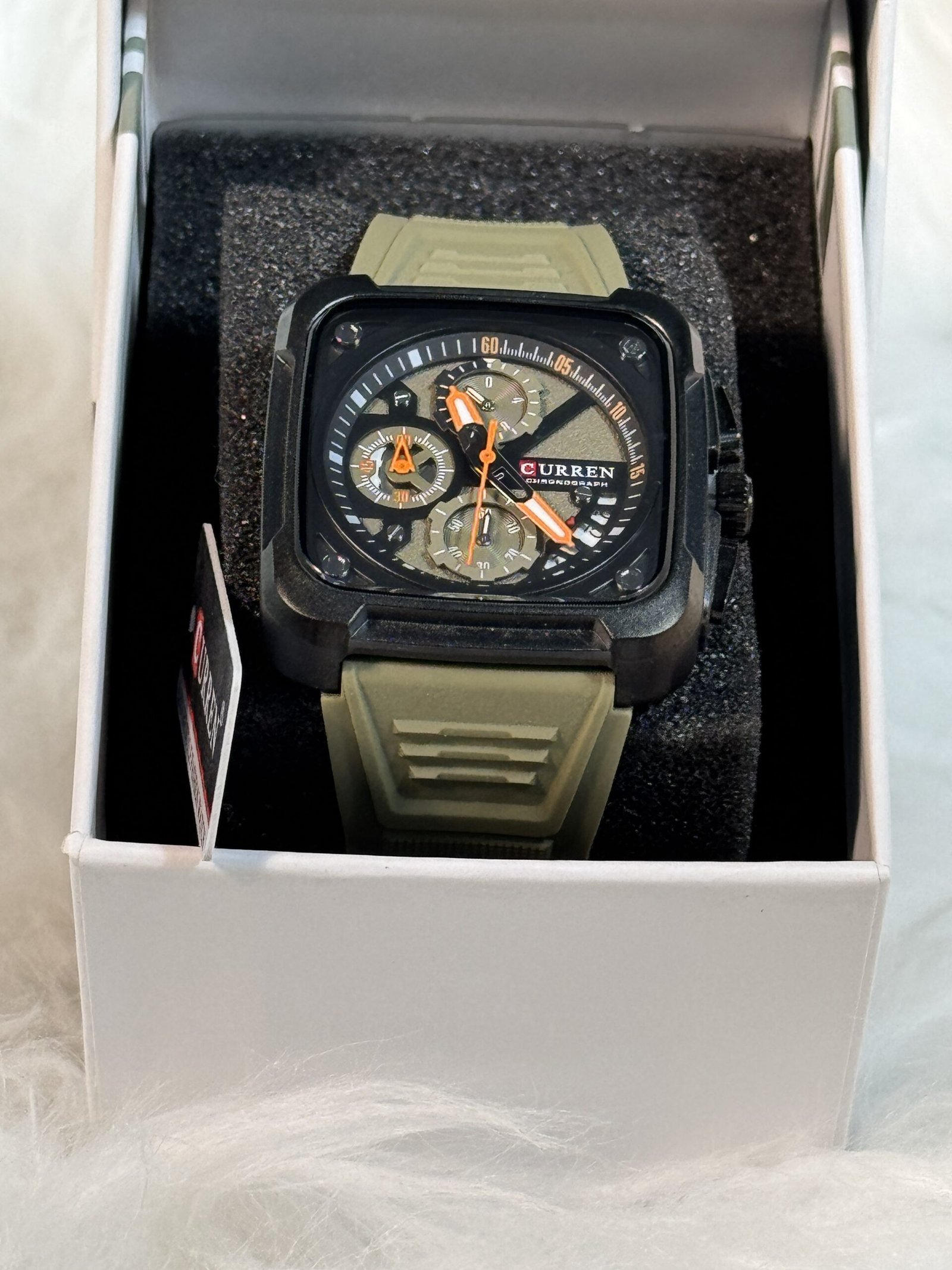 Whether you’re purchasing for yourself or gifting to someone special, this boxed Curren wristwatch offers the perfect blend of practicality and visual appeal. Its versatile army green watch strap and masculine yet refined design make it a great addition to any wardrobe, ensuring you or the recipient always stay ahead of the fashion curve.