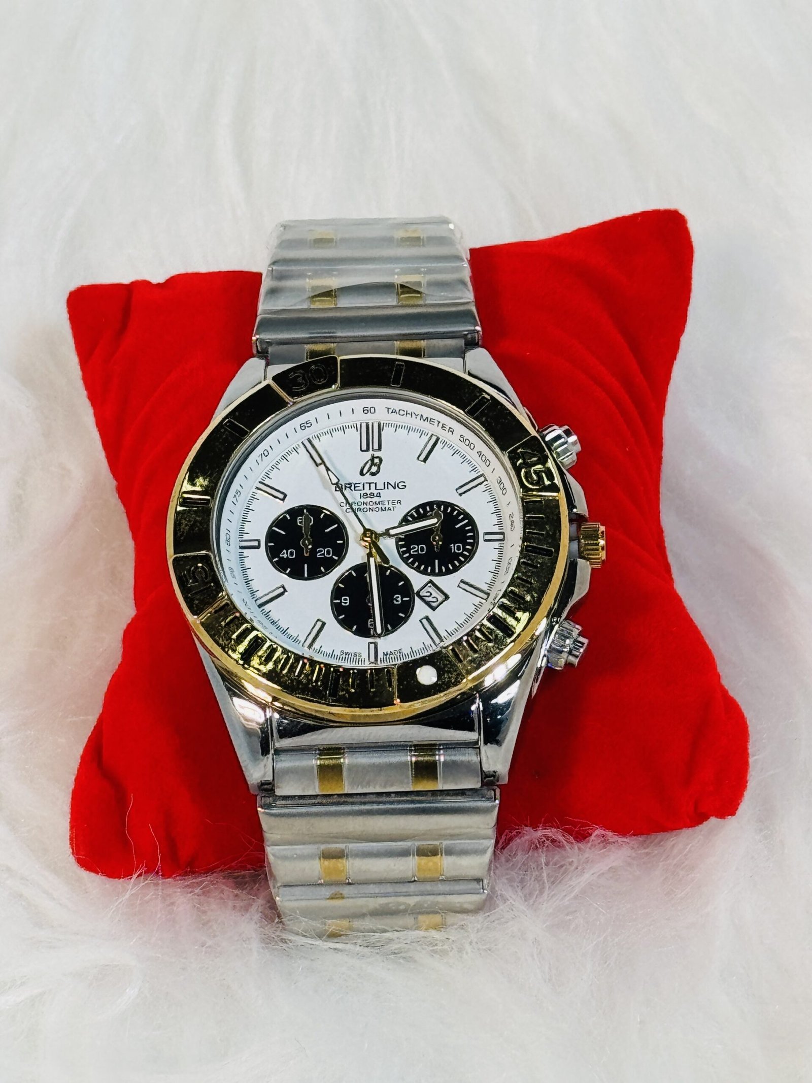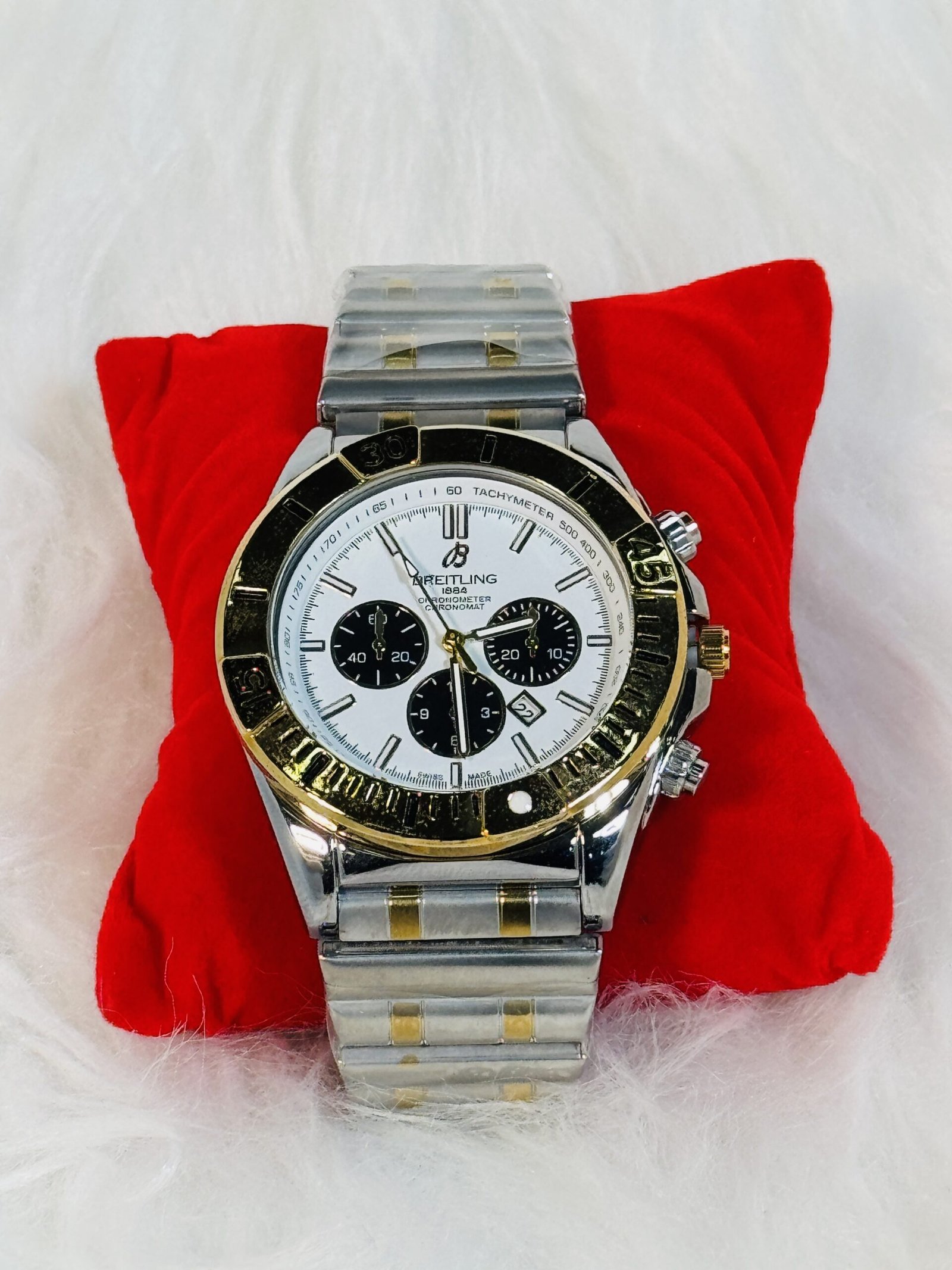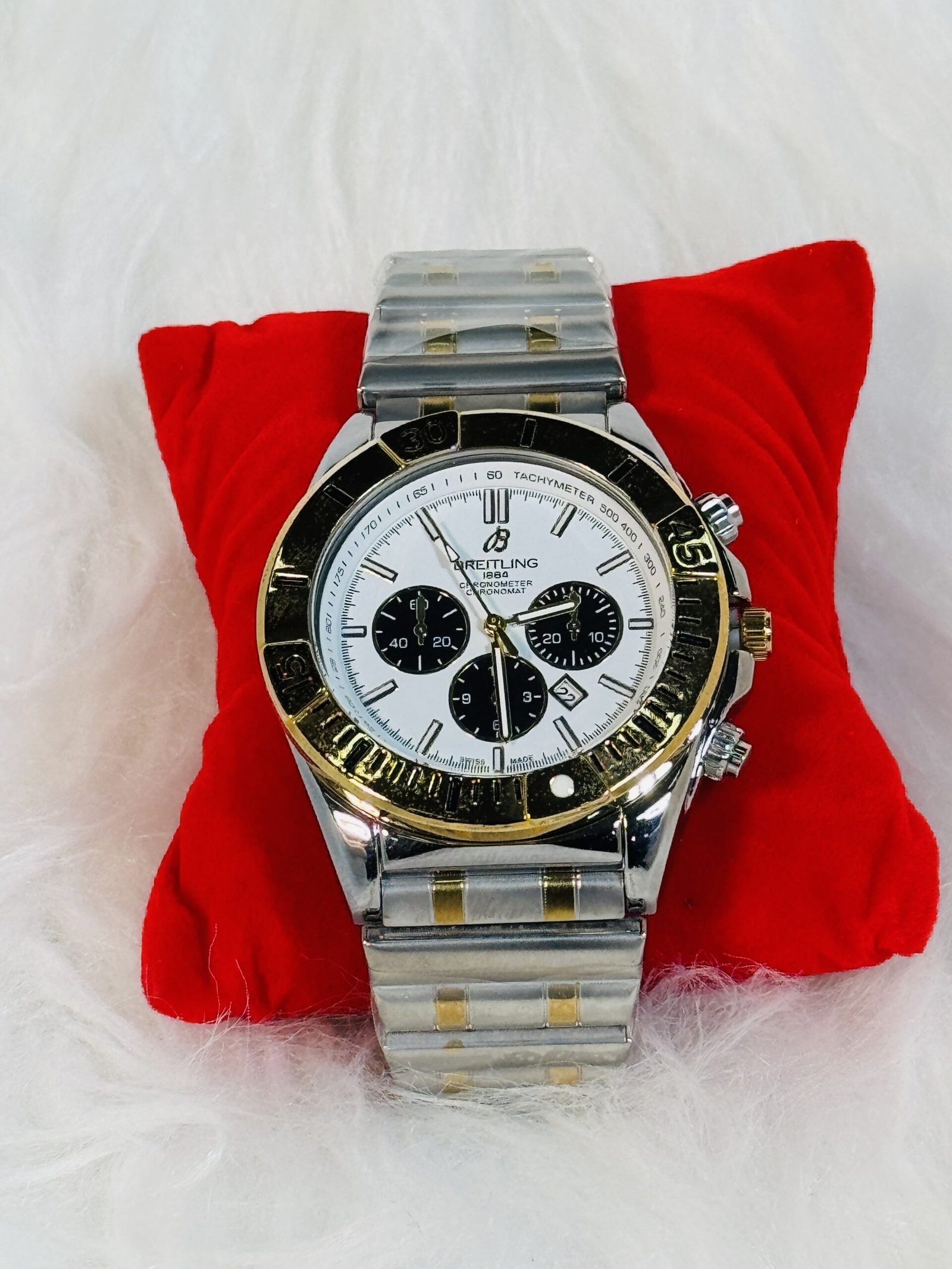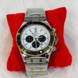 The Breitling 1884 wristwatch isn’t just a stunning visual addition to your wardrobe—it also meets the demands of durability and comfort. The smooth, subtly contrasted dull silver and gold chain strap is designed for long-term wear without compromising its refined appearance. Each element, from the screen to the strap and buttons, has been carefully crafted to provide robust performance alongside an effortlessly stylish aesthetic that stands out among competitors.