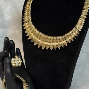 Crafted with premium-grade materials, this two-piece set ensures a luxurious finish that will complement any bridal outfit. The delicate white stones exude a classic charm, while the soft pink tones add a subtle pop of color, perfectly striking a balance between tradition and individuality. From the intricate butterfly design to the high-polish finish, every detail of this necklace set showcases expert craftsmanship, offering a unique piece that stands apart from conventional bridal jewelry.