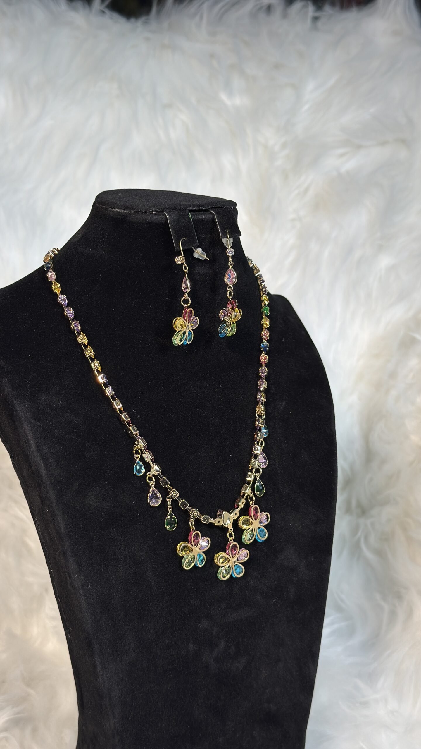 Introducing the Bridal Crystal Necklace Set – Custom Design 055, a masterpiece that transforms your wedding look into a picture-perfect moment. Crafted with precision, this luxurious necklace set features a colorful flower design that complements a wide range of bridal styles, from traditional to modern. With its sparkling crystals and vibrant hues, this necklace set ensures you’ll radiate elegance and beauty on your big day.