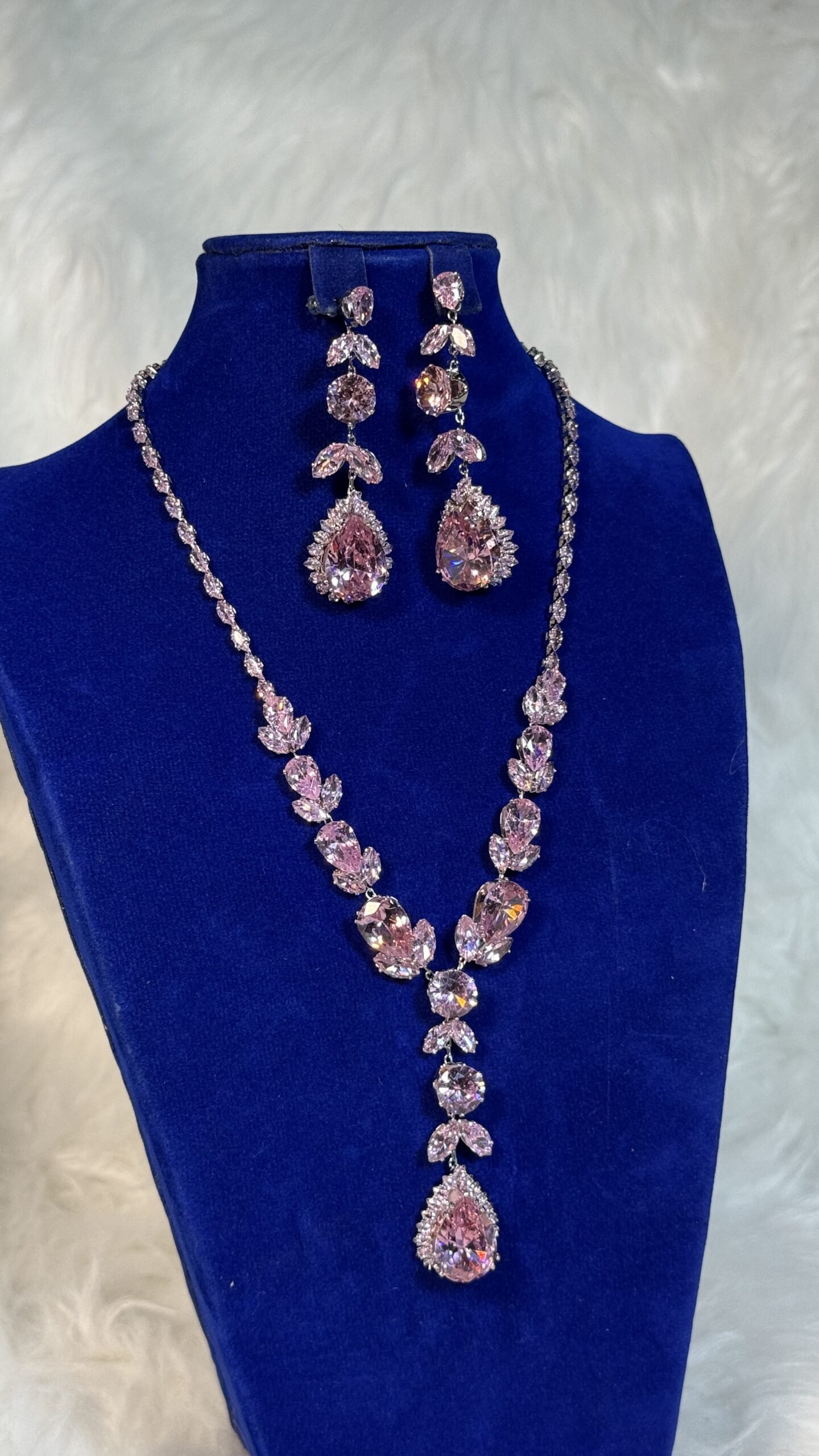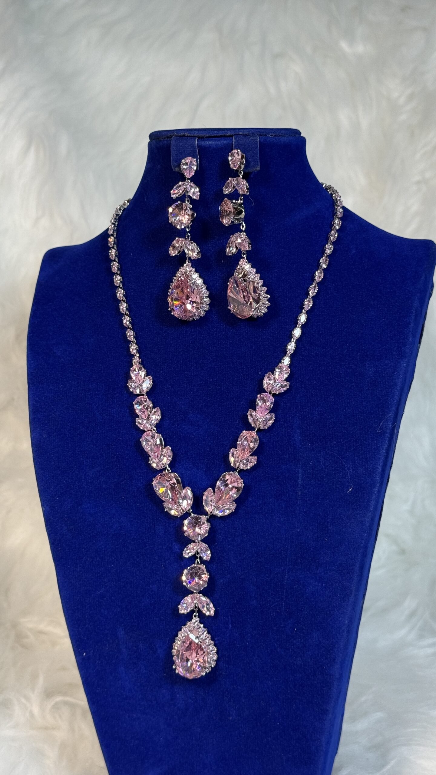 At the heart of this design lies exceptional quality. The intricate detailing of the necklace showcases master craftsmanship, with each crystal and pink stone carefully set to ensure durability and brilliance. The high-grade materials used are hypoallergenic and skin-friendly, promising comfort throughout your special occasion.
