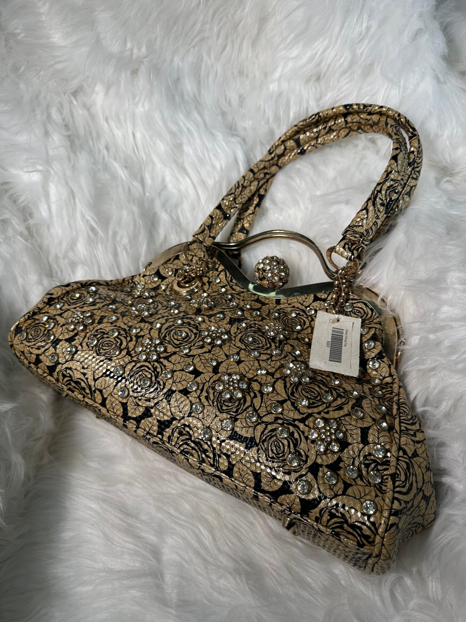 Introducing the brown stone-embedded bag that effortlessly blends sophistication with functionality. Designed to make a statement, this bag features stunning stone details paired with a sleek golden finish, adding a luxurious touch to your everyday ensemble.