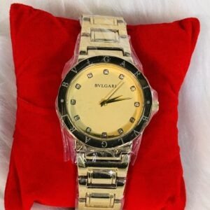The Bulgari wristwatch encapsulates timeless luxury and sophistication for those who appreciate the finer things in life. Designed with a medium plain golden strap, this exquisite timepiece is crafted to complement any outfit, be it casual or formal. Its circular golden screen adds a seamless elegance, showcasing impeccable craftsmanship paired with unrivaled style. This wristwatch is more than just an accessory; it’s a statement of refined taste and enduring class.