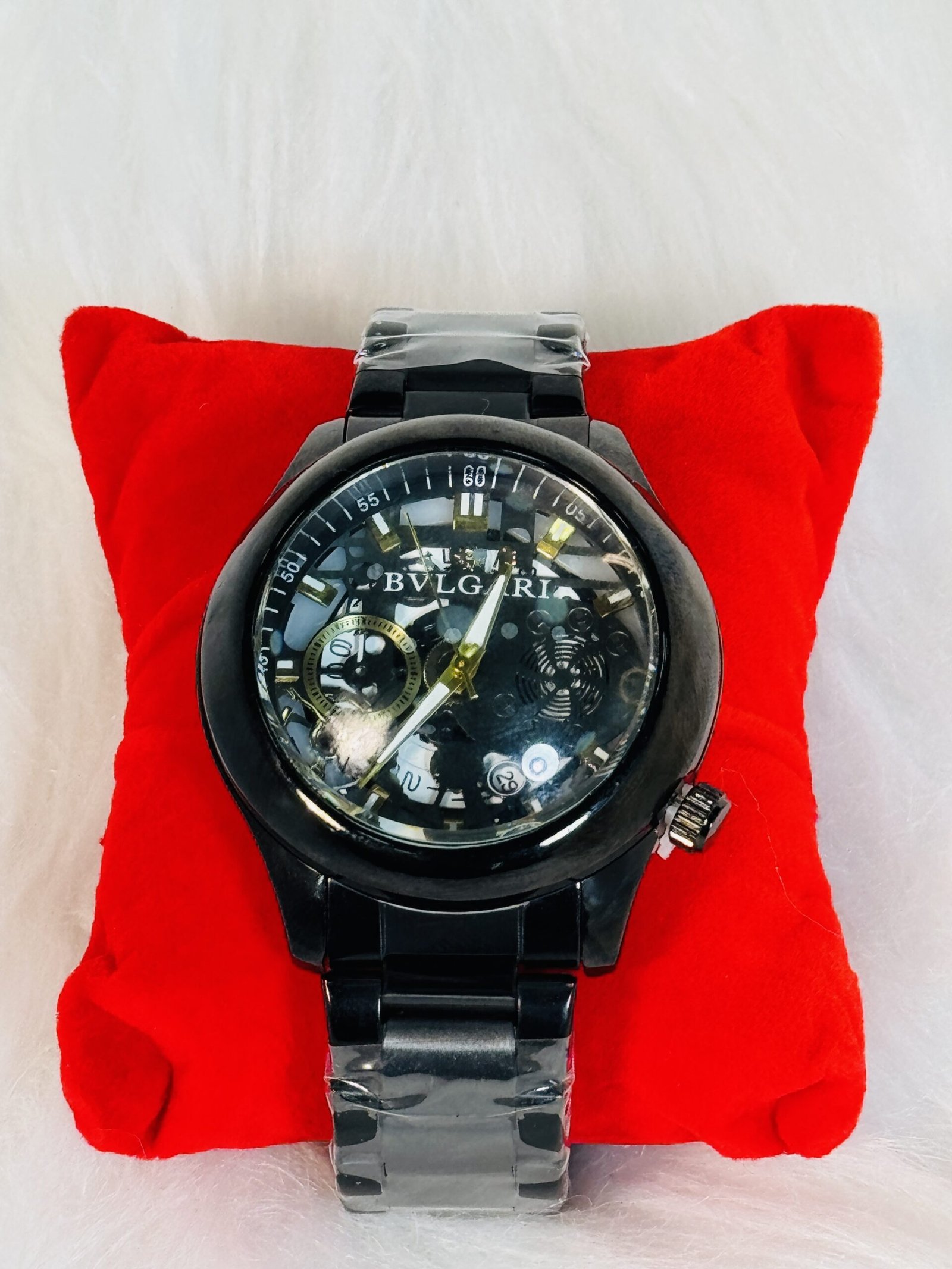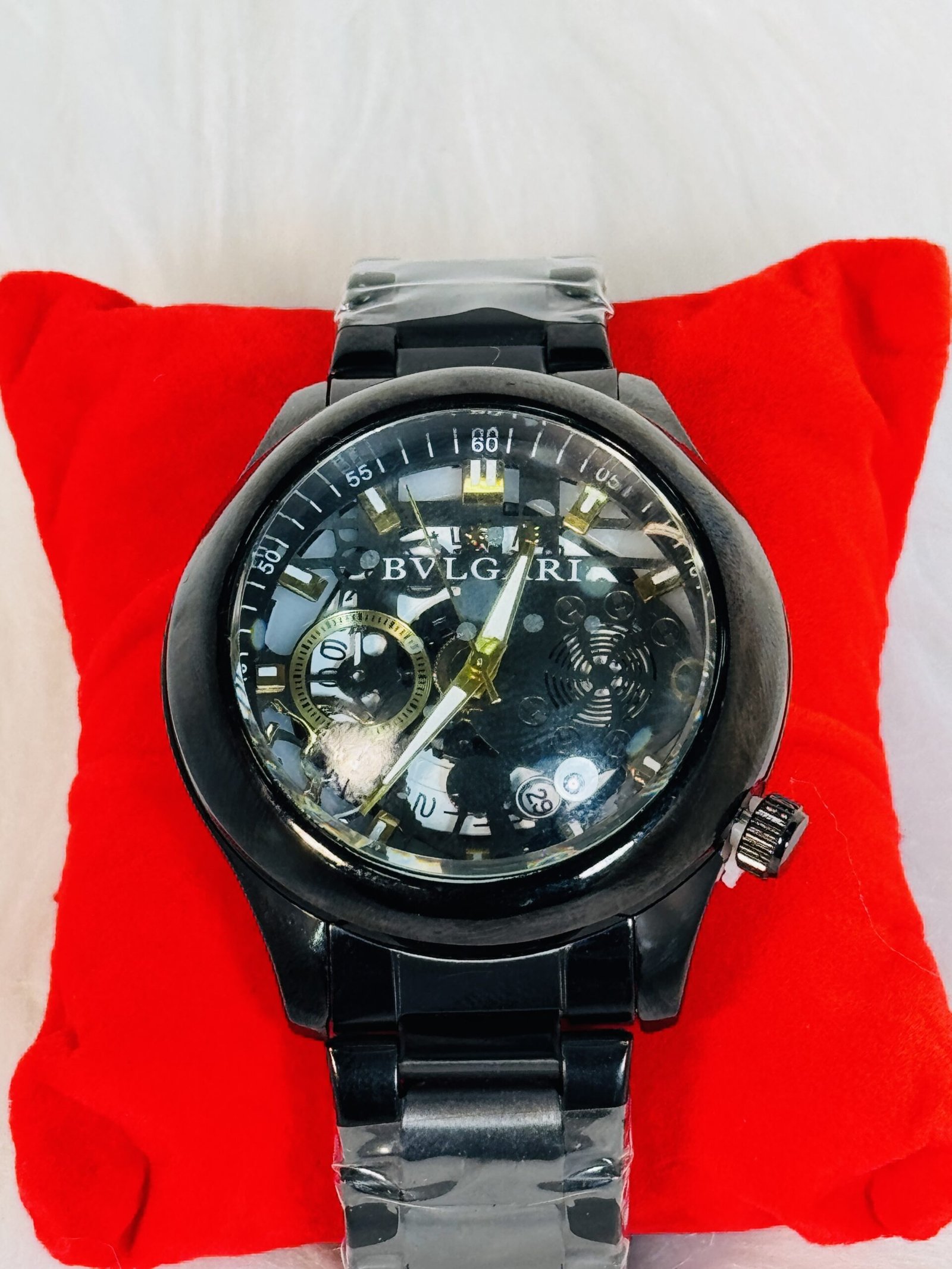 This timeless wristwatch is more than a device for keeping track of time—it is a statement of class and luxury. Whether worn to formal gatherings or casual outings, the Bulgari wristwatch elevates any outfit. Its unique black and white skeleton screen paired with golden engravings adds a touch of individuality and sophistication, making it ideal for collectors and enthusiasts who appreciate high-end wristwear. Don’t miss the opportunity to own a piece that combines functionality and aesthetic perfection.