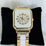 What sets this wristwatch apart is its distinctive white rectangular screen, bordered by sleek white and golden sides that exude refinement and luxury. The combination of colors creates a harmonious aesthetic that catches the eye while maintaining subtle sophistication. The white rotation hands glide effortlessly, ensuring accurate timekeeping while adding to the minimalist charm of the watch’s design.