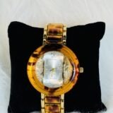 The wristwatch boasts an eye-catching design with a bold big chain strap that combines golden and brown tones, exuding a polished, modern aesthetic. Anchored by a silver-embellished round screen, the watch showcases a harmonious mix of contrasting elements that add depth and versatility. The brown and golden sides complement the overall design while ensuring a versatile pairing with a variety of outfits. This standout accessory is not just visually appealing—its functional white rotation hands provide reliable timekeeping every day.