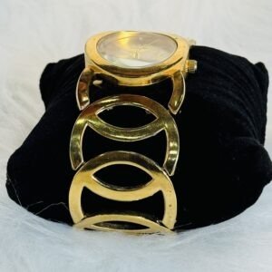 The silver embellished round screen stands out as a focal point that catches the eye. Its intricately designed finish harmonizes beautifully with the black and golden sides, creating a look that is both unique and charming. The watch also boasts golden rotation hands, adding a luxurious touch to every glance. The meticulous craftsmanship ensures you’re wearing more than just a wristwatch – you’re wearing a statement of sophistication.
