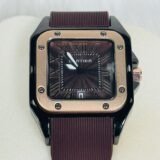 Experience the perfect balance of sophistication and durability with our coffee brown plastic Cartier watch. It is thoughtfully designed to complement both modern and classic fashion sensibilities, ensuring you make a statement no matter the occasion. The resilient coffee brown plastic base offers robustness and lightweight wearability, making it ideal for daily use while maintaining its luxurious appeal.