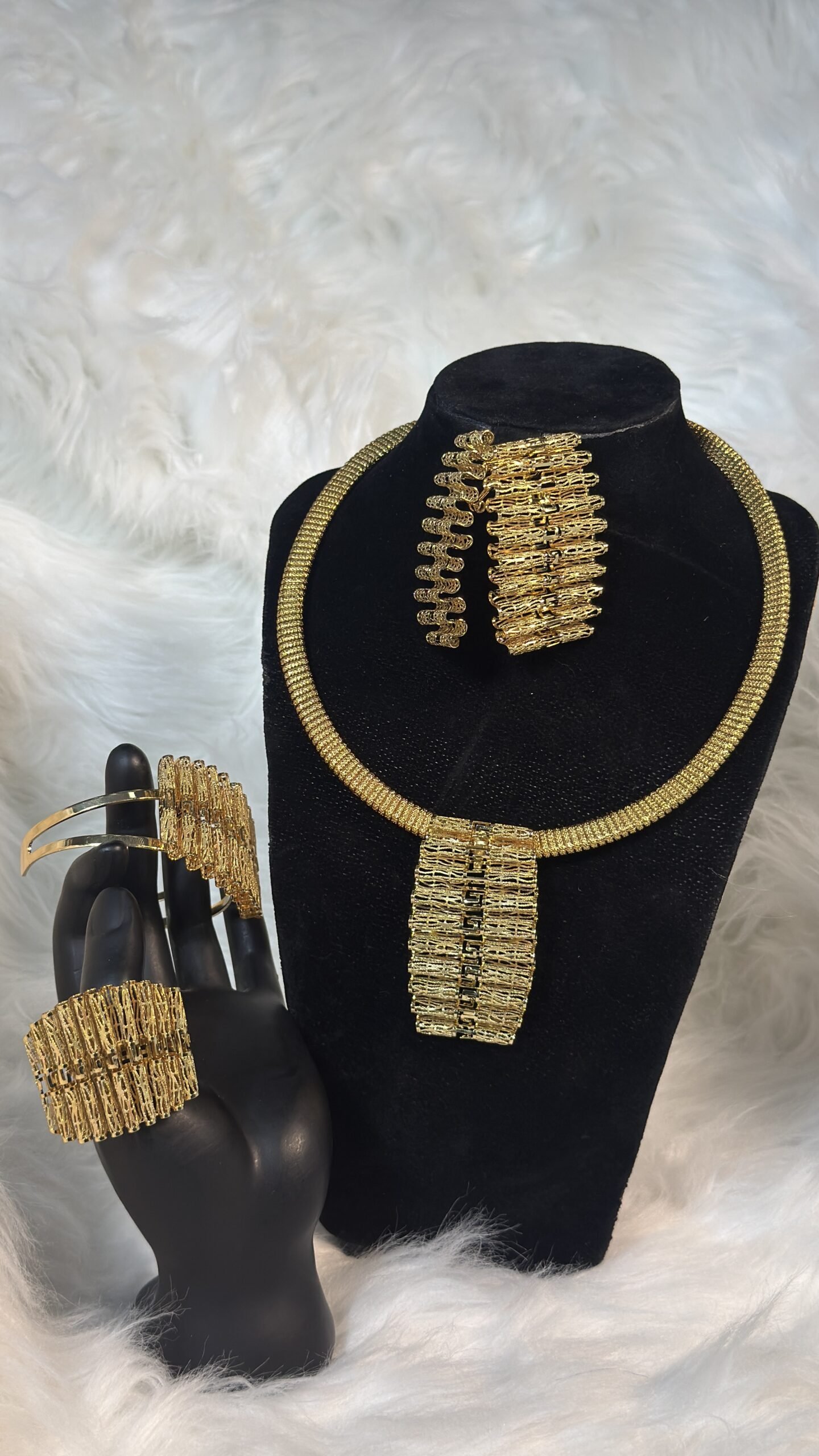 Elevate your accessories game today with this stunning selection of jewelry. Whether you’re dressing for an event or adding a touch of luxury to your everyday outfit, this gold set is the perfect choice for style-conscious individuals.