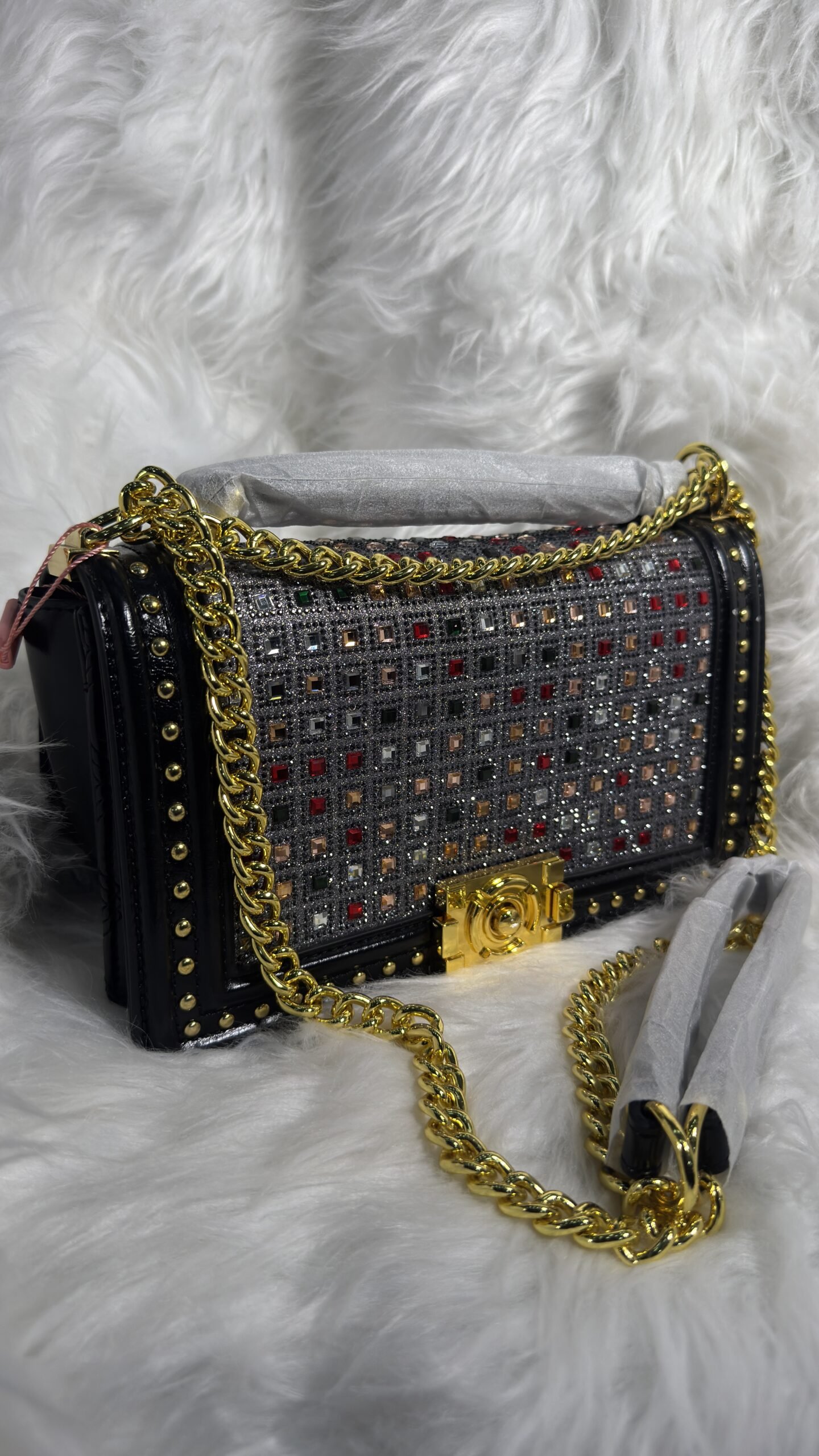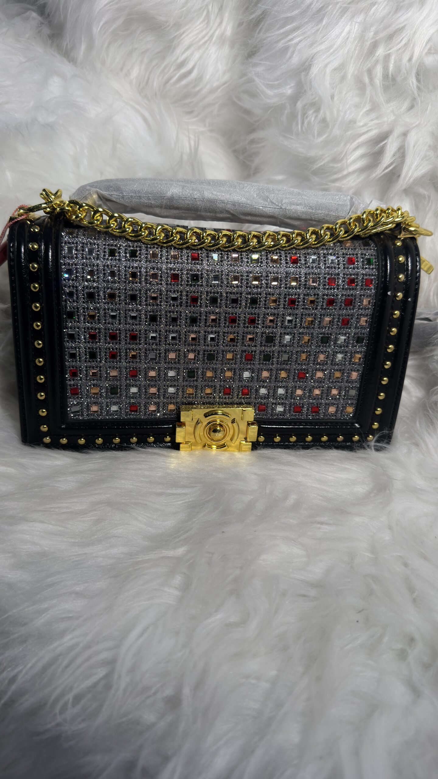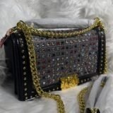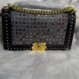 Introducing our Fashion leather black and silver bag with gold holder—your new go-to accessory that seamlessly combines sophistication with functionality. Whether you’re heading to a casual outing or a formal event, this bag is crafted to complement any wardrobe style. The harmonious blend of black and silver leather creates an understated elegance, making it a standout piece in any ensemble.