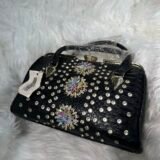 Whether paired with an evening gown or a smart-casual outfit, the black stoned bag adapts seamlessly to any attire. Durable materials and fine craftsmanship ensure this bag is as reliable as it is stylish. Invest in a piece that’s both practical and timeless.