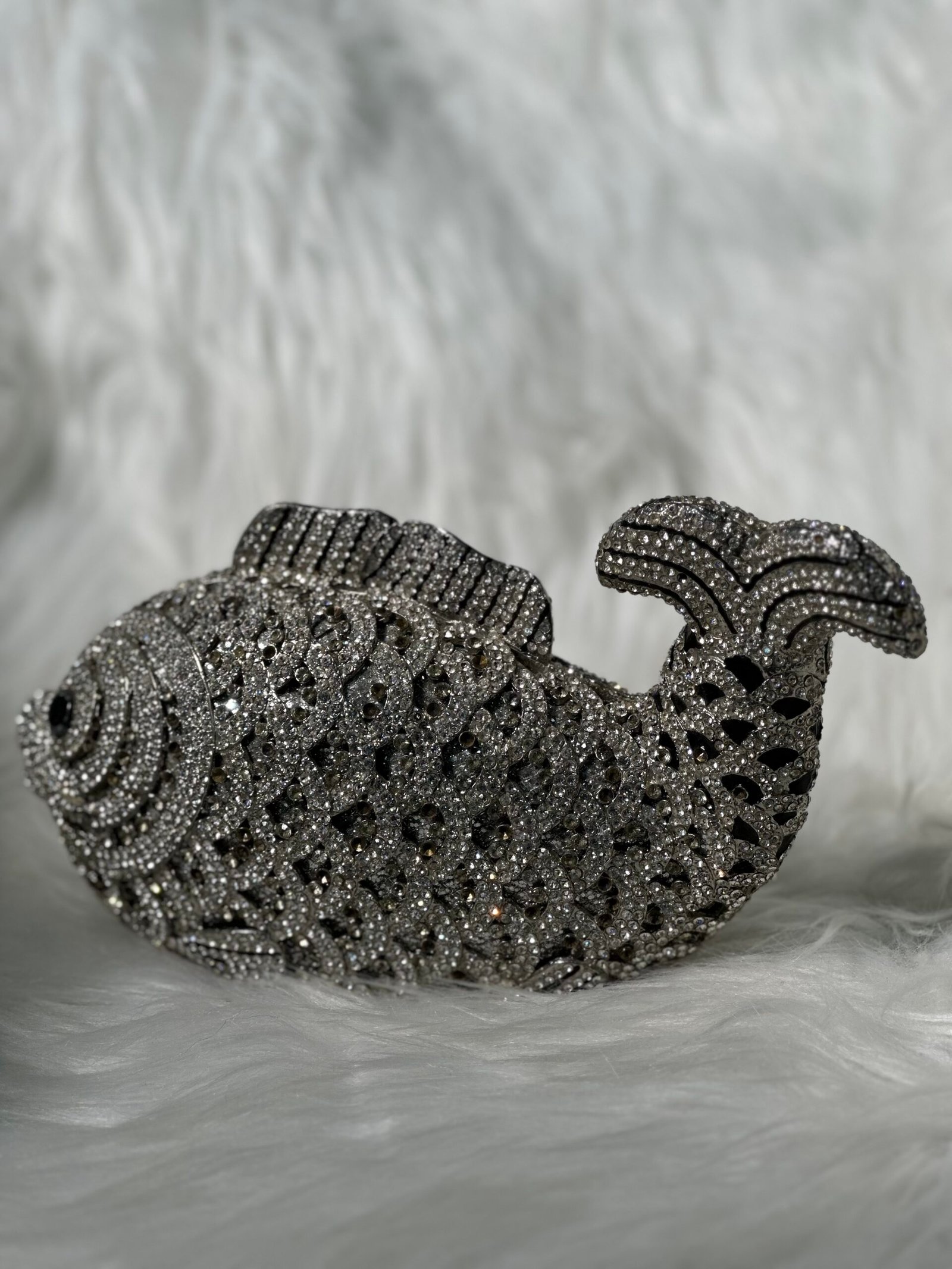 The Fish Style Stone Embedded Silver Clutch Purse is a masterpiece of craftsmanship, designed for those who seek sophistication and uniqueness. Its striking fish-inspired design, coupled with shimmering stones and silver accents, makes it an eye-catching accessory that enhances any outfit effortlessly. Whether you’re attending formal events, weddings, or special evening parties, this purse is a standout companion that elevates your style.