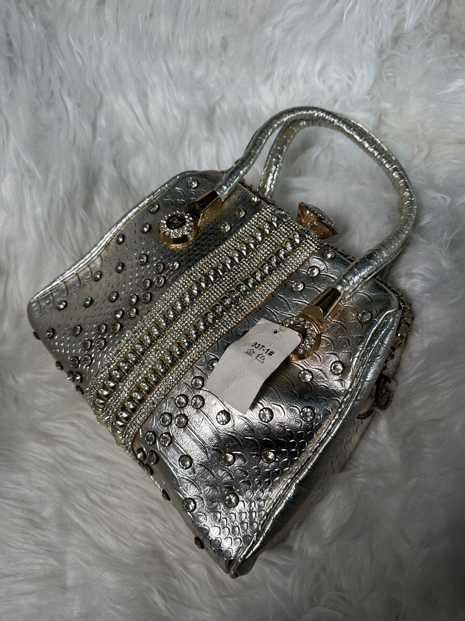 Each element of this bag reflects fine craftsmanship, combining gold and silver tones for a striking yet versatile look. The dotted diamond accents add a touch of glamour, ensuring this piece stands out wherever you go while complementing a variety of outfits.