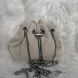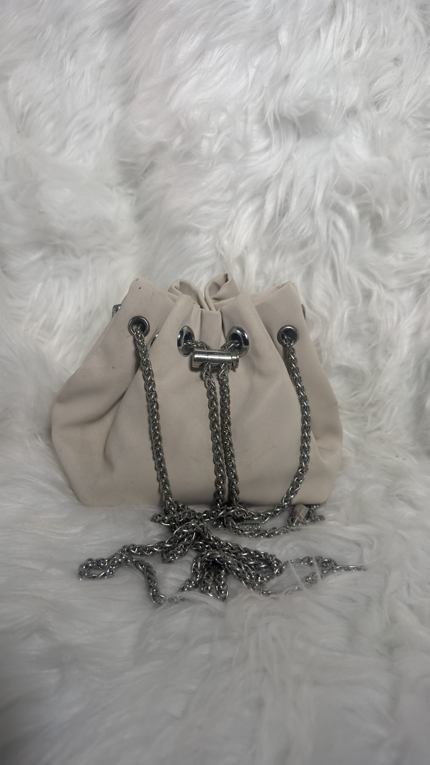 Functionality meets chic design with the high-quality silver chain strap. Complementing the off-white exterior, the silver chain strap ensures durable yet flexible wear. It’s perfect for carrying comfortably over your shoulder, while maintaining a glamorous vibe. The thoughtful design ensures practicality without compromising on visual appeal.