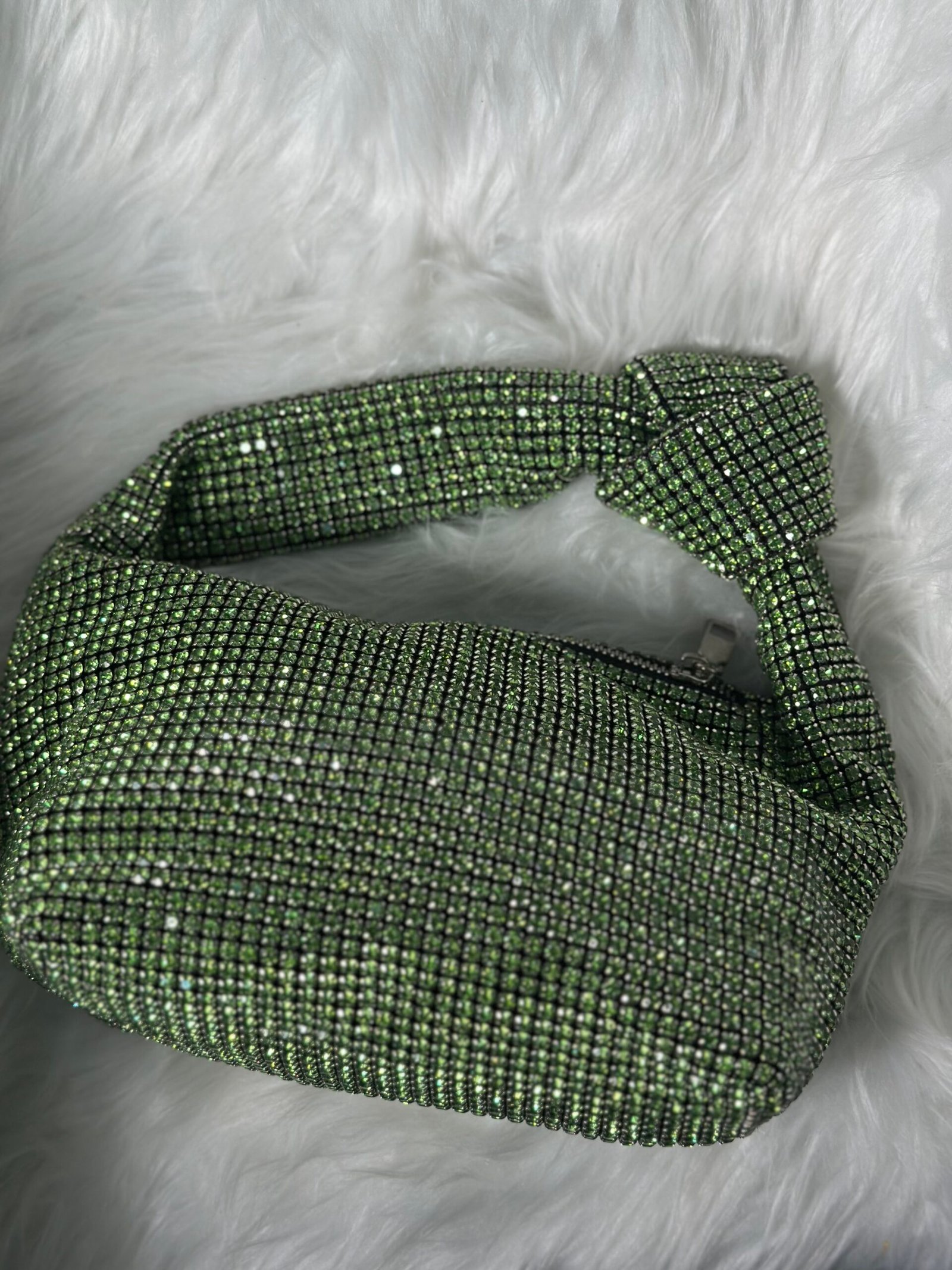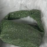 Introducing the exquisite stone embedded green silver purse, a statement accessory that combines timeless glamour with modern functionality. Designed with a meticulous attention to detail, this purse is perfect for evening gatherings, formal events, or adding a touch of sophistication to your daily look.