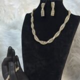 This custom-designed jewelry set showcases intricate detailing and superior craftsmanship. The twisted design adds a layer of sophistication, while the shimmering stones provide a touch of sparkle that catches the eye. Whether you’re dressing up for a formal occasion or adding a bit of glam to your everyday look, this set is versatile yet distinctive, ensuring you feel effortlessly chic.