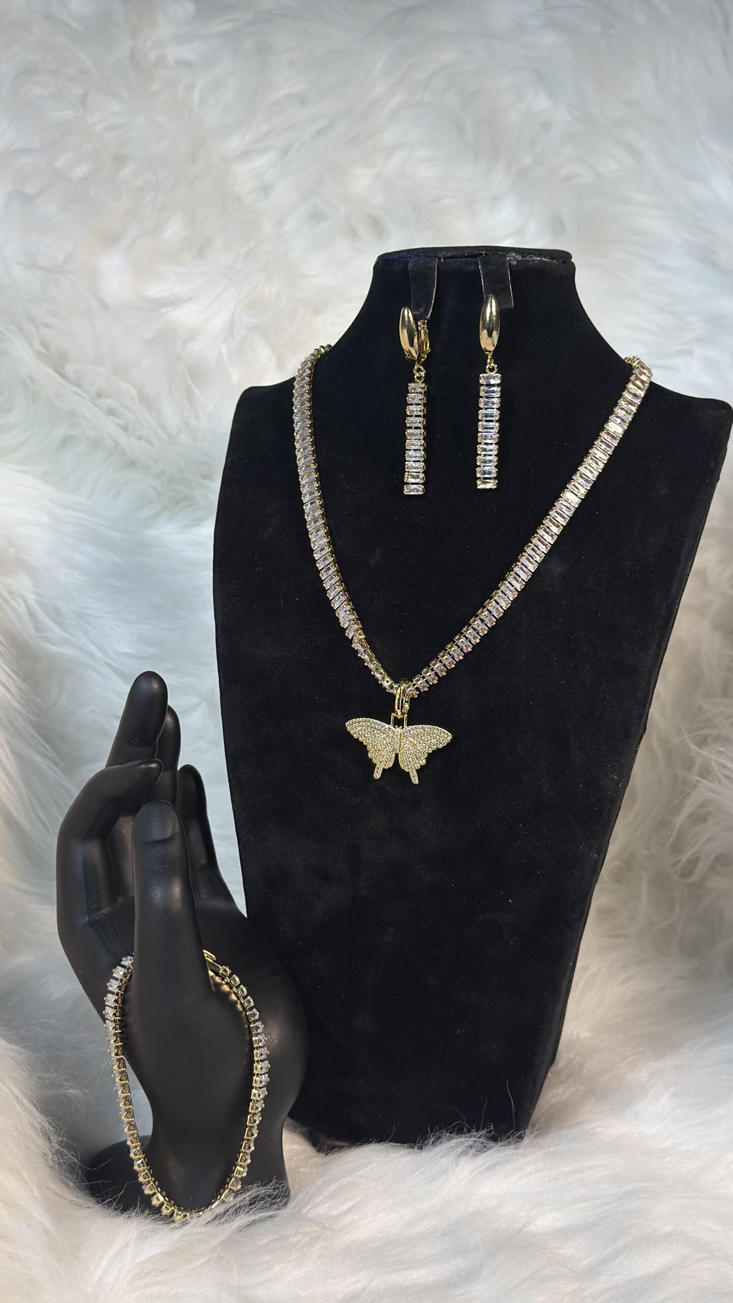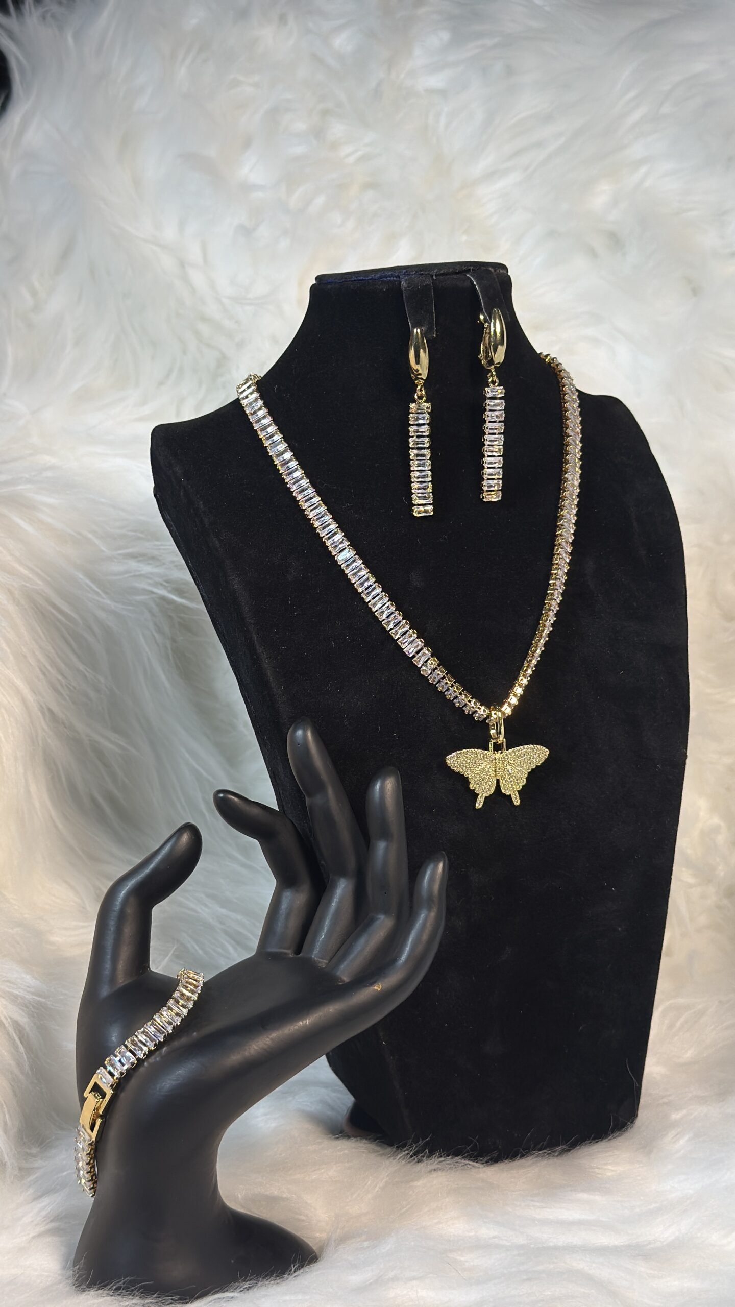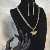 The centerpiece of this jewelry set is the mesmerizing butterfly pendant, adorned with dazzling stones that radiate brilliance and charm. Each element is meticulously designed to bring out the beauty of the butterfly motif, making this set truly one-of-a-kind. The stones are carefully selected to ensure high quality, durability, and a vibrant sparkle that won’t go unnoticed.