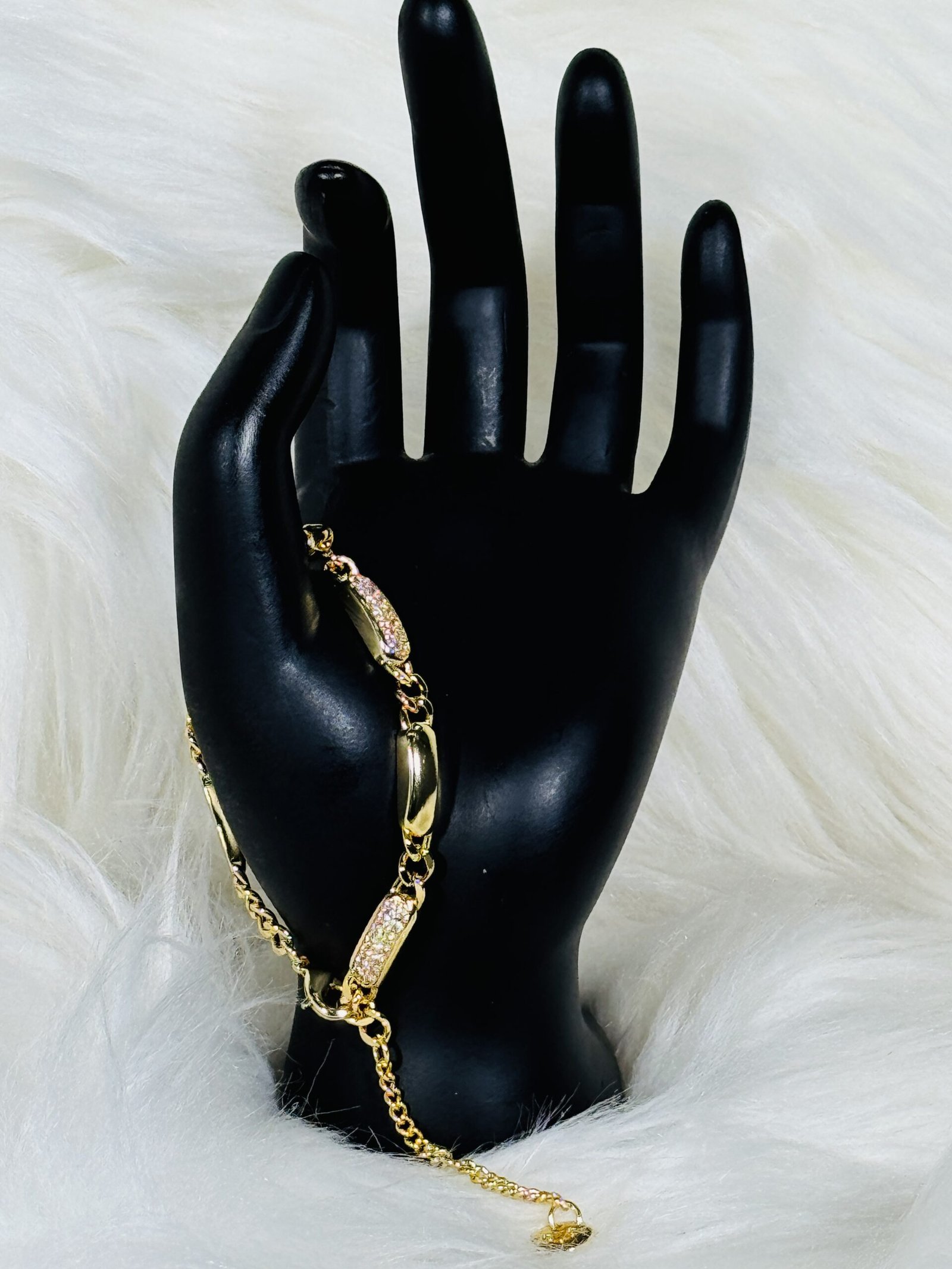 What sets this bracelet apart is its exquisite chain detail, which ties its designs together beautifully. This golden chain highlights the bracelet’s intricate artistry while ensuring durability and comfort. The chain adds depth to its overall appearance, creating an accessory that’s both sophisticated and unique. Whether paired with other FENDI pieces or worn alone, the chain element elevates the bracelet to the level of true luxury.