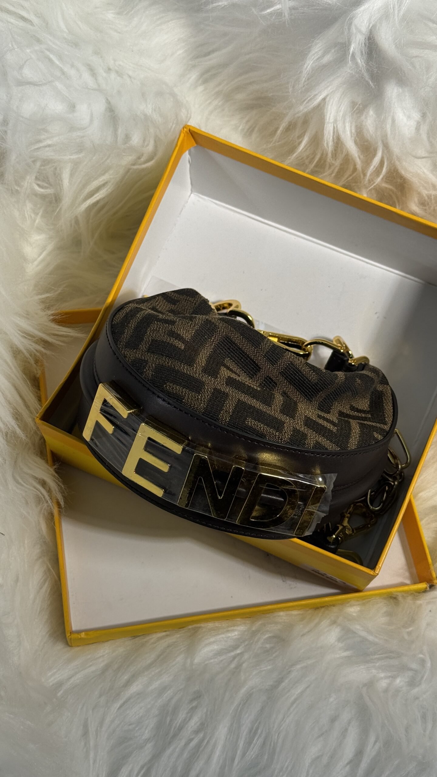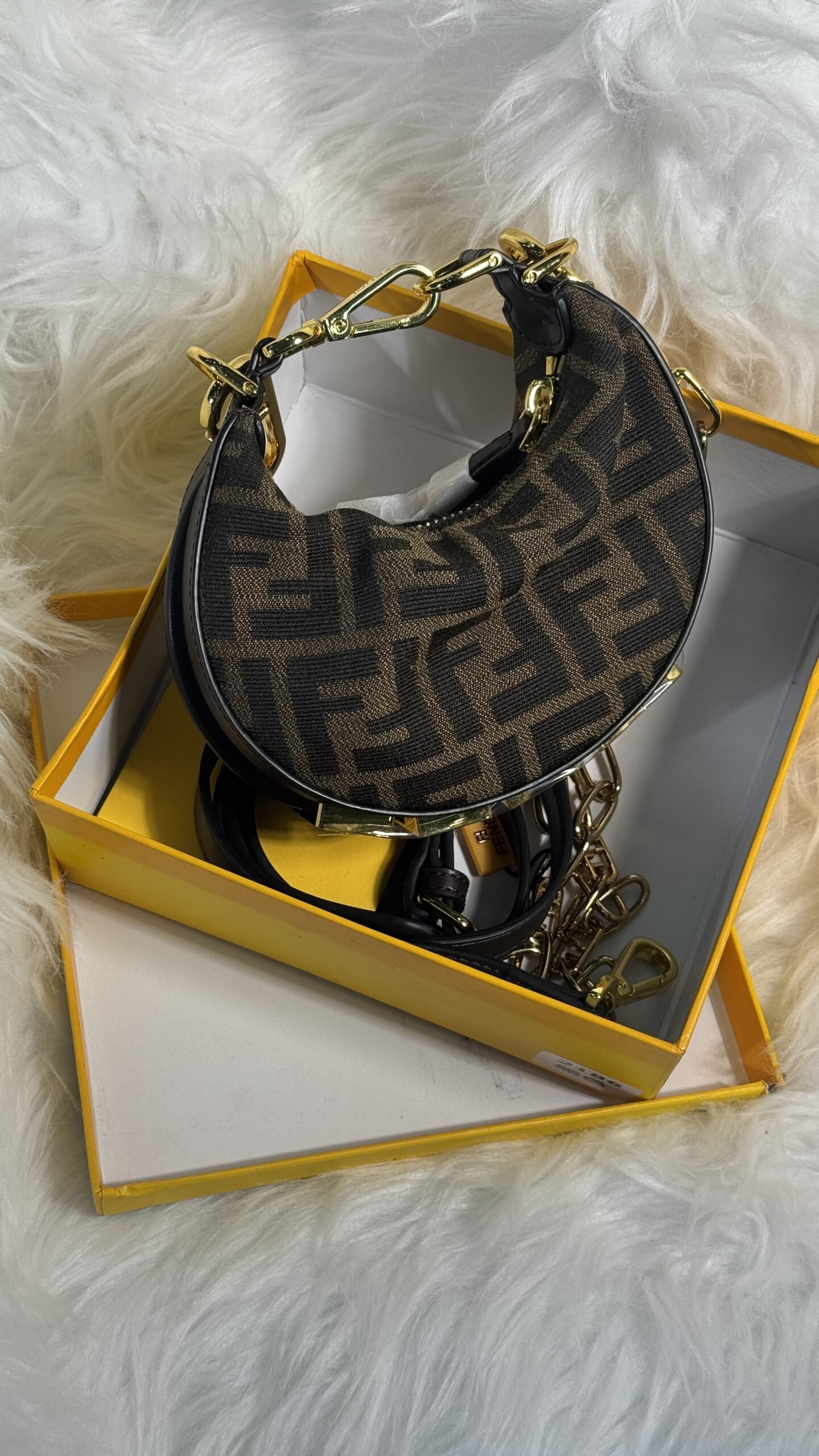 Indulge in timeless luxury with the fully boxed Fendi Roma brown bag. Designed with exquisite attention to detail, this bag not only reflects sophistication but also provides functionality in a sleek and compact profile. Whether it’s for your daily errands or an evening out, this Fendi bag ensures you make an elegant impression wherever you go.