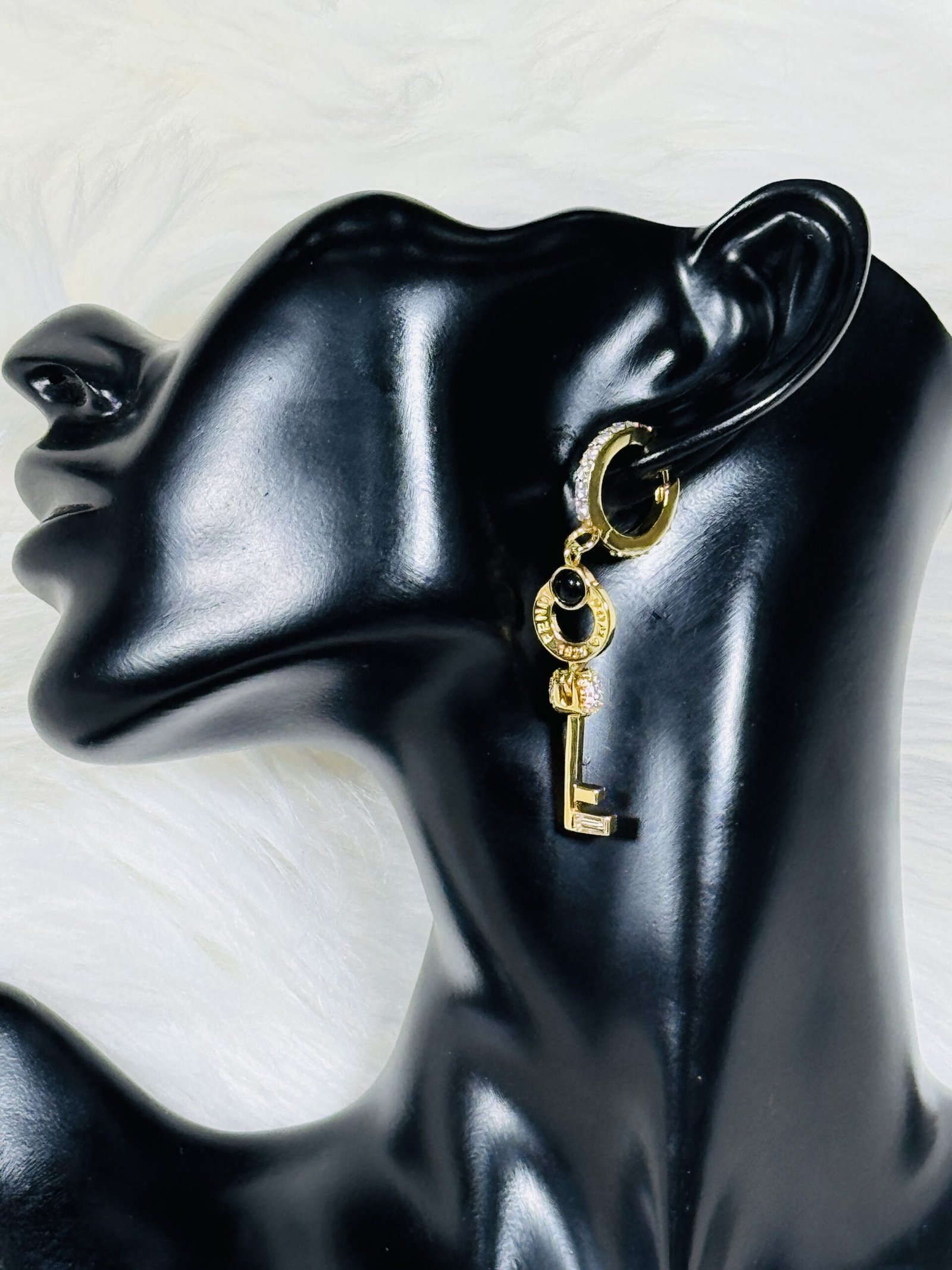 Fashioned from high-quality materials, these earrings showcase FENDI’s commitment to excellence in every detail. The delicate small loops provide a lightweight yet sturdy feel, making them comfortable for extended wear. The medium-sized key-like pendant adds a touch of intrigue and modern flair, effortlessly blending minimalism with sophistication. Whether you wear them daily or for special events, these earrings are bound to draw compliments wherever you go.