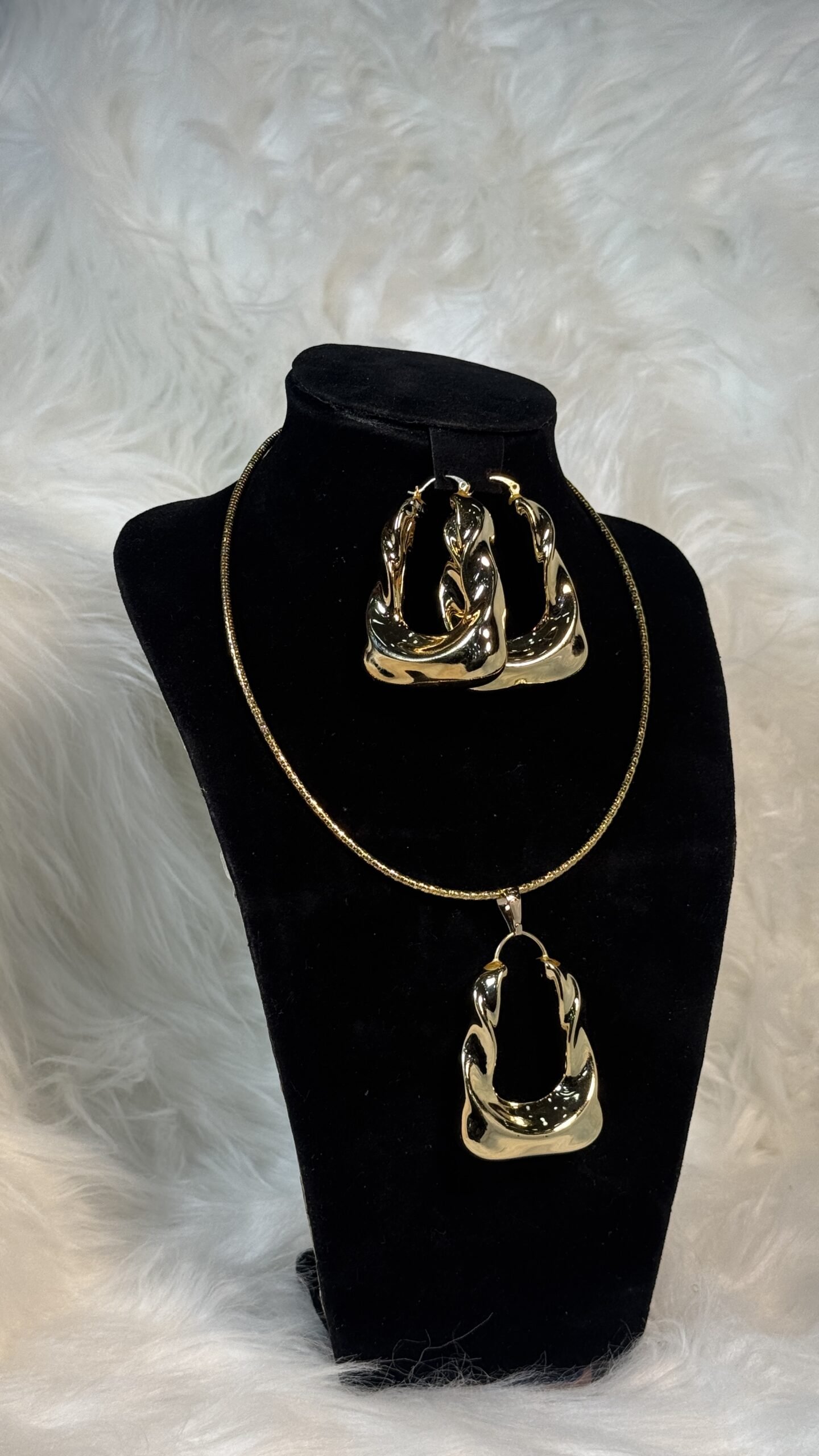 Discover a timeless blend of sophistication and creativity with the Gold Bag-Like Fashion Jewelry Set (Custom Design 026). This meticulously crafted collection is designed to elevate your style while showcasing an unparalleled touch of luxury. Perfect for both everyday elegance and special occasions, this three-piece set is a true statement of individuality.