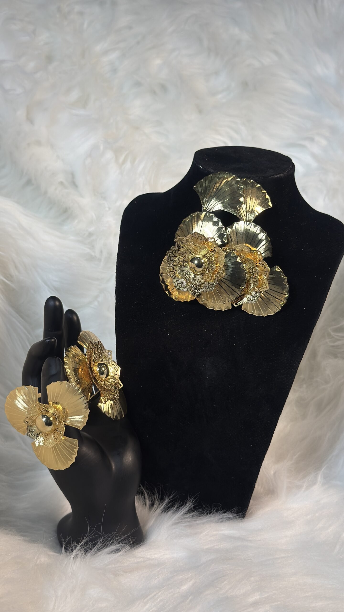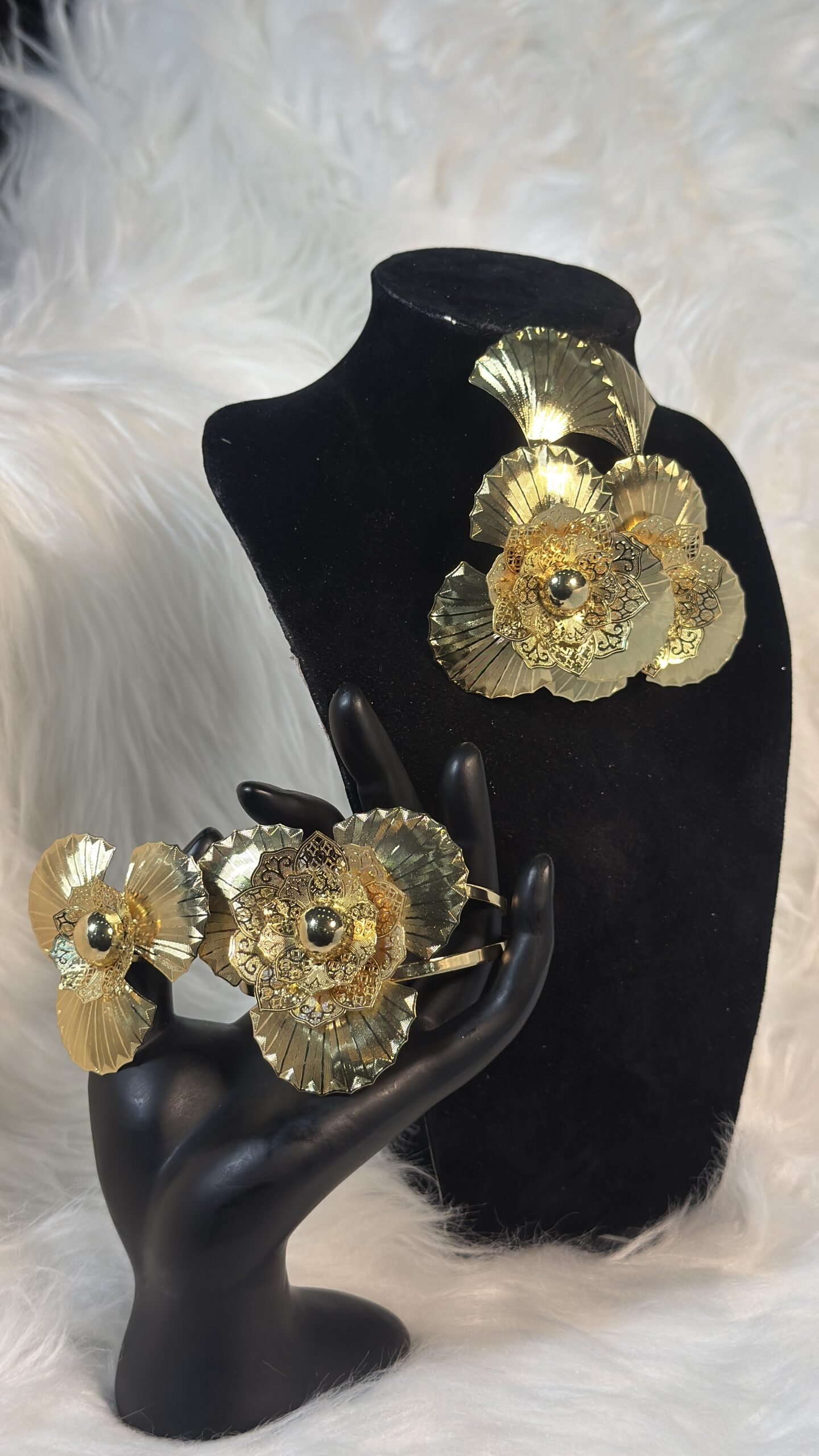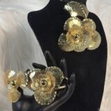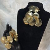 Every piece in this gold jewelry set showcases intricate craftsmanship and a focus on delivering beauty and durability. The flower pendant, a highlight of this set, balances grace and modern design, making it versatile enough to complement evening wear or everyday outfits. The matching earrings and ring follow the same floral-inspired design, adding a cohesive touch to your look without being overly ornate. This set proudly embodies elegance that seamlessly fits a range of occasions.