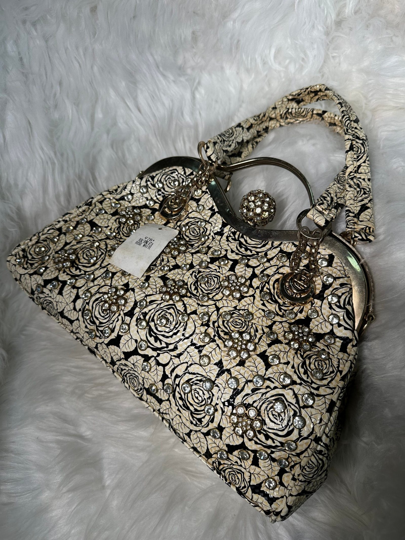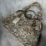 Make a bold statement with our Gold Handy Bag featuring exquisite dotted silver accents. Crafted to combine elegance with functionality, this bag is perfect for enhancing your everyday look or complementing a glamorous evening outfit.