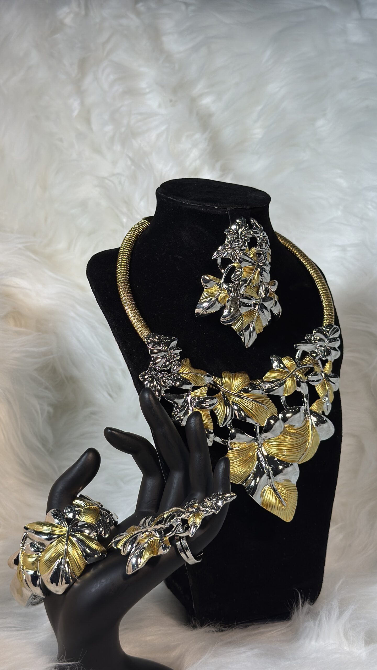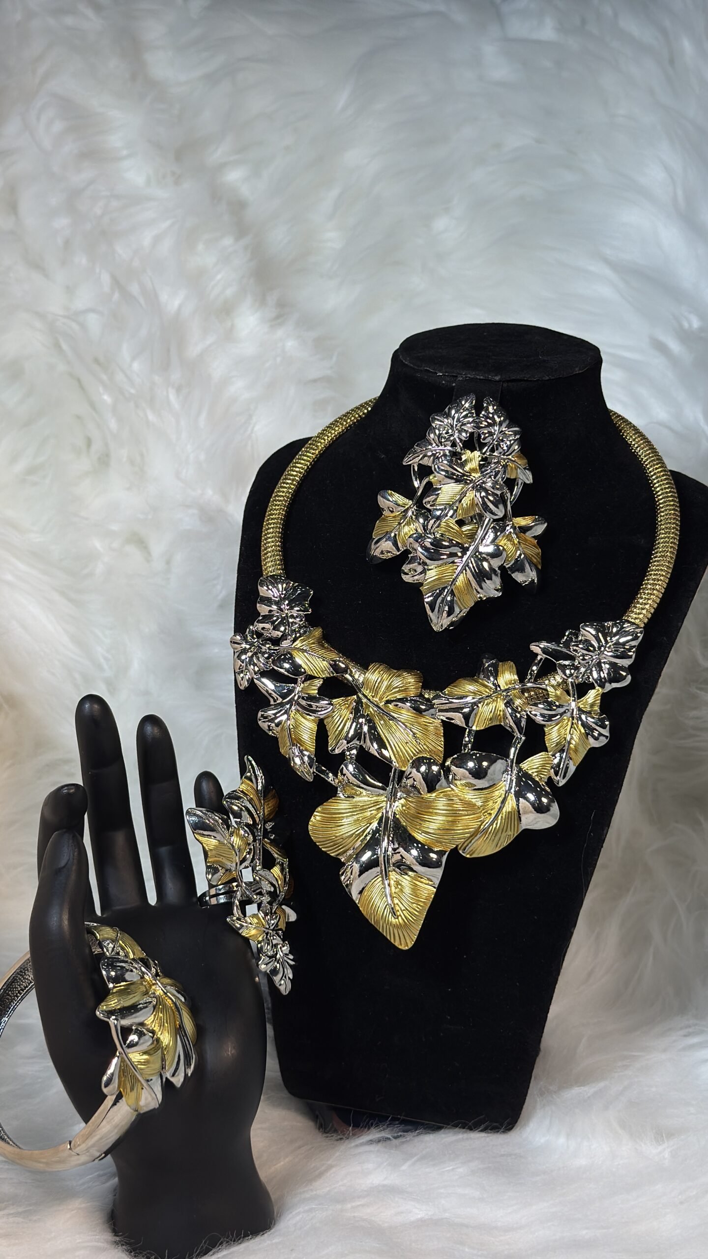 This set is more than just jewelry—it’s art tailored for you. Custom Design – 001 ensures exclusivity, allowing you to wear something truly unique. Carefully curated to highlight individuality, the bracelet and rings harmonize beautifully, giving you a cohesive yet versatile ensemble. With luxurious materials and meticulous detailing, the jewelry brings out your personality while making an enviable statement. Indulge in this exclusive product, offered at an economical price point of 30,000/40,000, for a set that includes a single piece but makes a lasting impression.