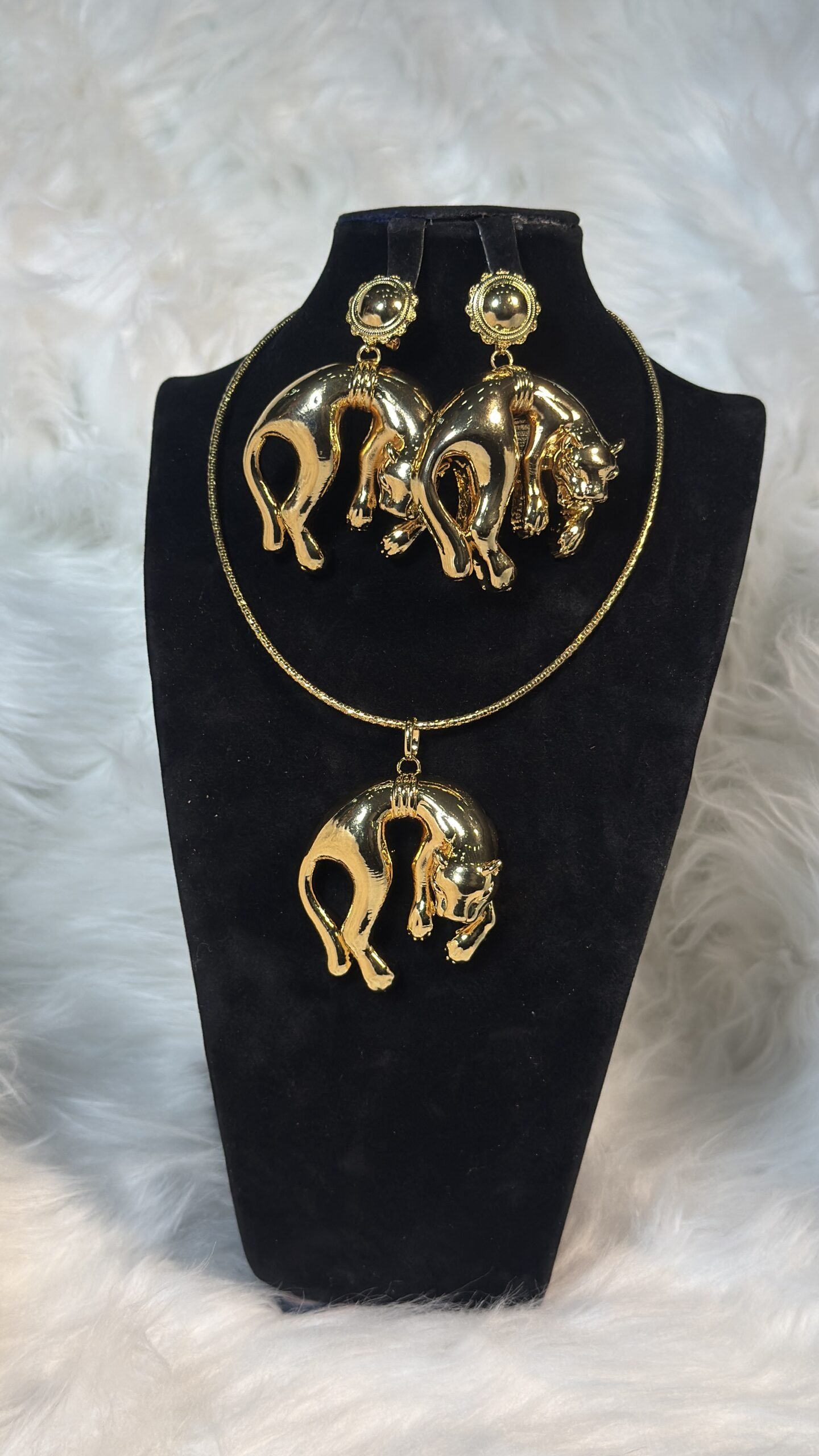 Crafted with care, the Gold Leopard Design Fashion Jewelry Set features a custom design (017) that sets it apart from conventional jewelry pieces. The intricate leopard pattern symbolizes strength, elegance, and individuality—perfect for the bold and chic persona. This jewelry set is a testament to quality, with elements specially tailored to deliver exceptional durability and a visually striking appearance that complements any outfit seamlessly.