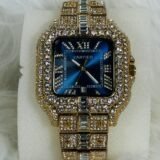 At the heart of this Golden Cartier wristwatch lies impeccable artistry and precision. Featuring a stunning blue screen as its face, this watch is designed to attract attention while offering exceptional clarity. The contrast between the rich golden finish and the polished blue face creates a striking visual appeal that captures the essence of Cartier’s renowned craftsmanship.