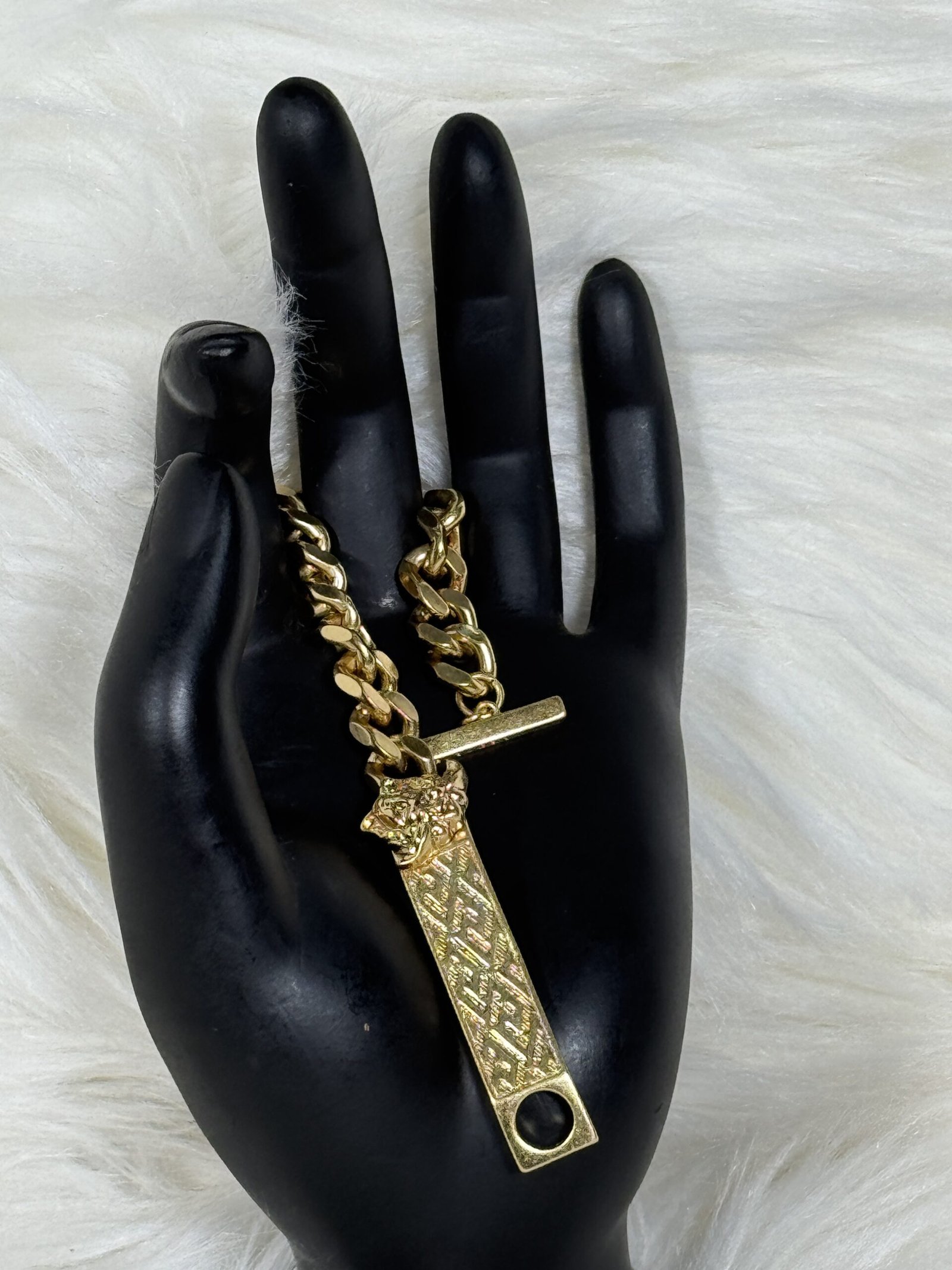 If you’re looking for a timeless piece that celebrates luxury and functionality, the Golden Versace bracelet with its golden rectangular pendant is the ultimate choice. Make it yours today and experience the essence of elegance at a price you’ll appreciate.