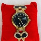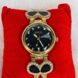 Whether you’re heading to a business meeting or an evening event, this Gucci wristwatch effortlessly accentuates any outfit. The black strap, with its ribbon-like texture interlaced with a chain, ensures a snug and comfortable fit. The timeless design and premium materials used in this watch make it a lasting piece that embodies both durability and style. With its versatile design and impeccable details, it is more than just a timepiece – it’s an extension of your personality.