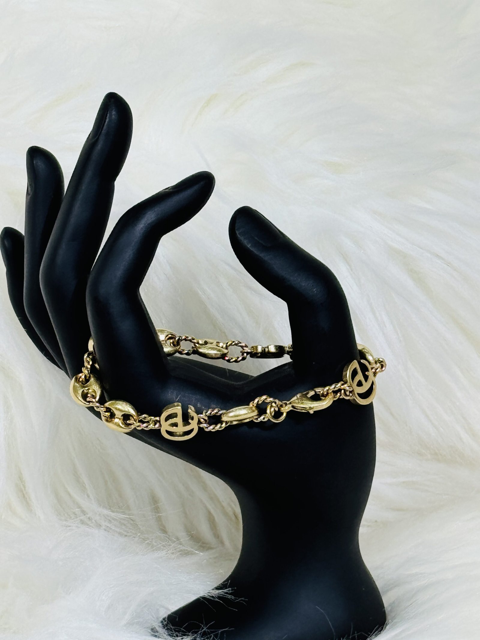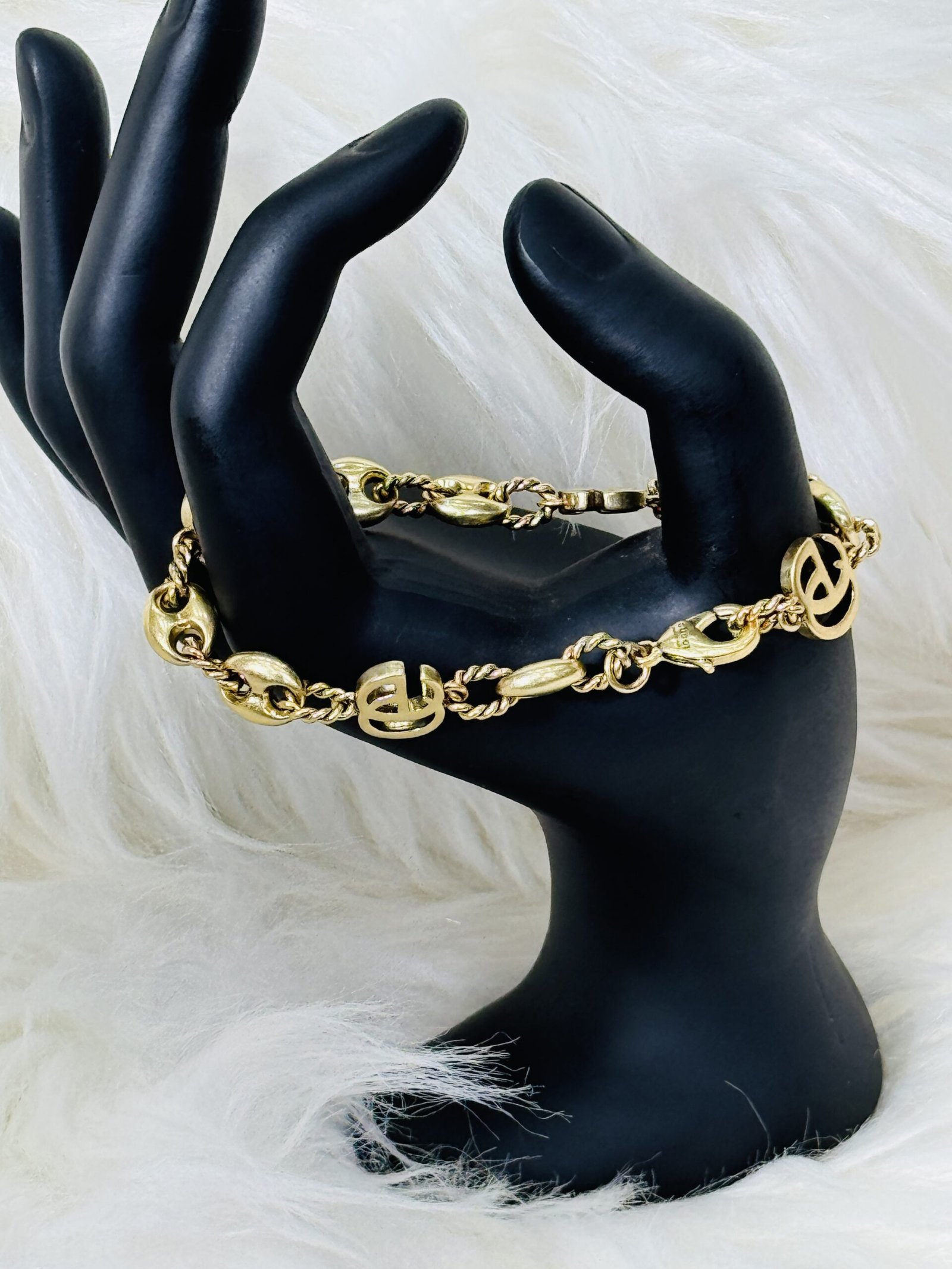 Step into sophistication with our exquisitely crafted medium heavy Gucci bronze bracelet. Designed to seamlessly blend modern elegance with timeless charm, this piece is crafted for individuals who value quality, style, and originality. The signature Gucci logo embedded into the bracelet adds a touch of prestige, making it the perfect accessory to complement any outfit, whether casual or formal.