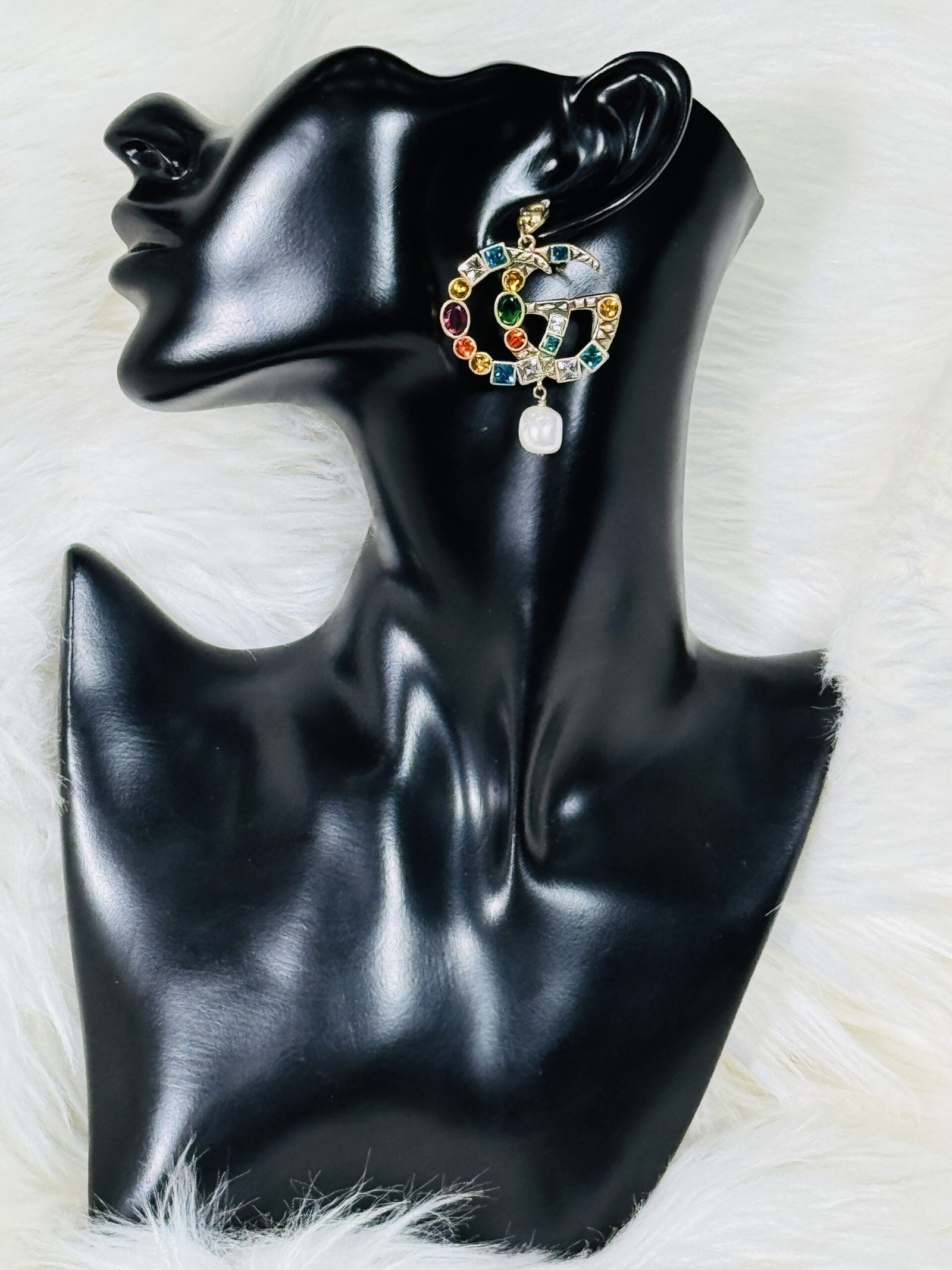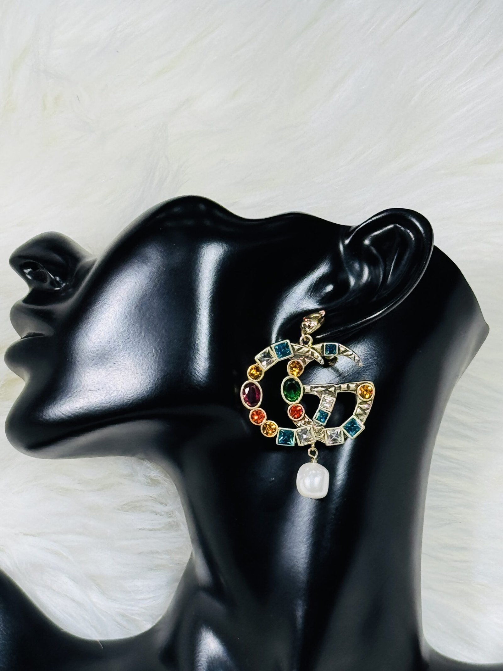 Indulge in sophistication with these stunning Gucci earrings that embody a perfect blend of luxury and style. Featuring iconic Gucci branding, these earrings are designed for those who adore standout accessories that make a statement. The prominent Gucci logo is beautifully embellished with multicolored stones and luminous pearls, delivering a timeless accessory that complements any outfit.