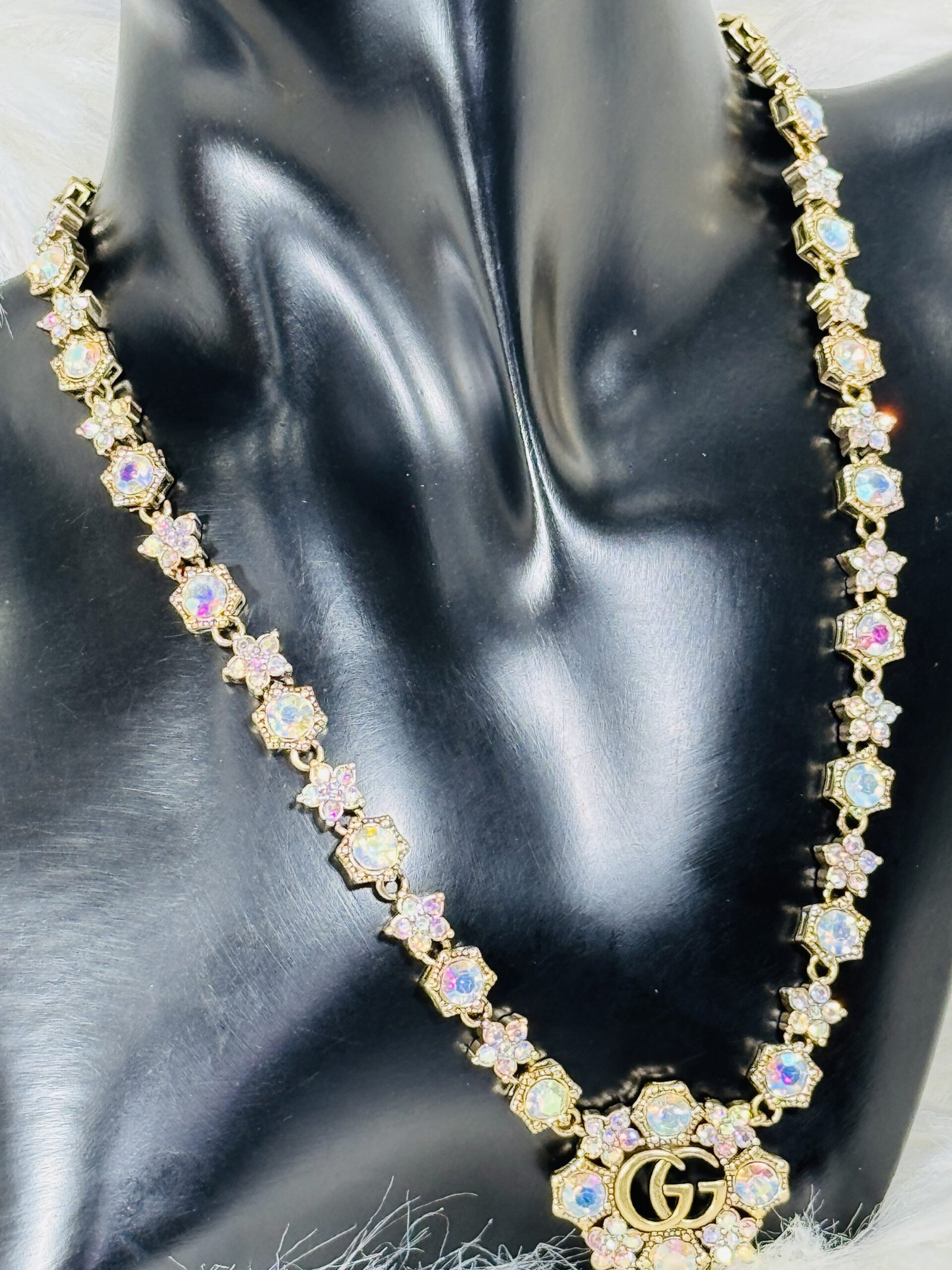 The Gucci Multicolored Stoned Necklace is a true masterpiece of modern design, offering an exquisite combination of sophistication and charm. Featuring vibrant star-like stones in a variety of hues, this necklace is meticulously crafted to stand out as a statement piece in your collection. The delicate, star-inspired gems create a captivating allure, while the Gucci logo embellishment adds an unmistakable touch of luxury.