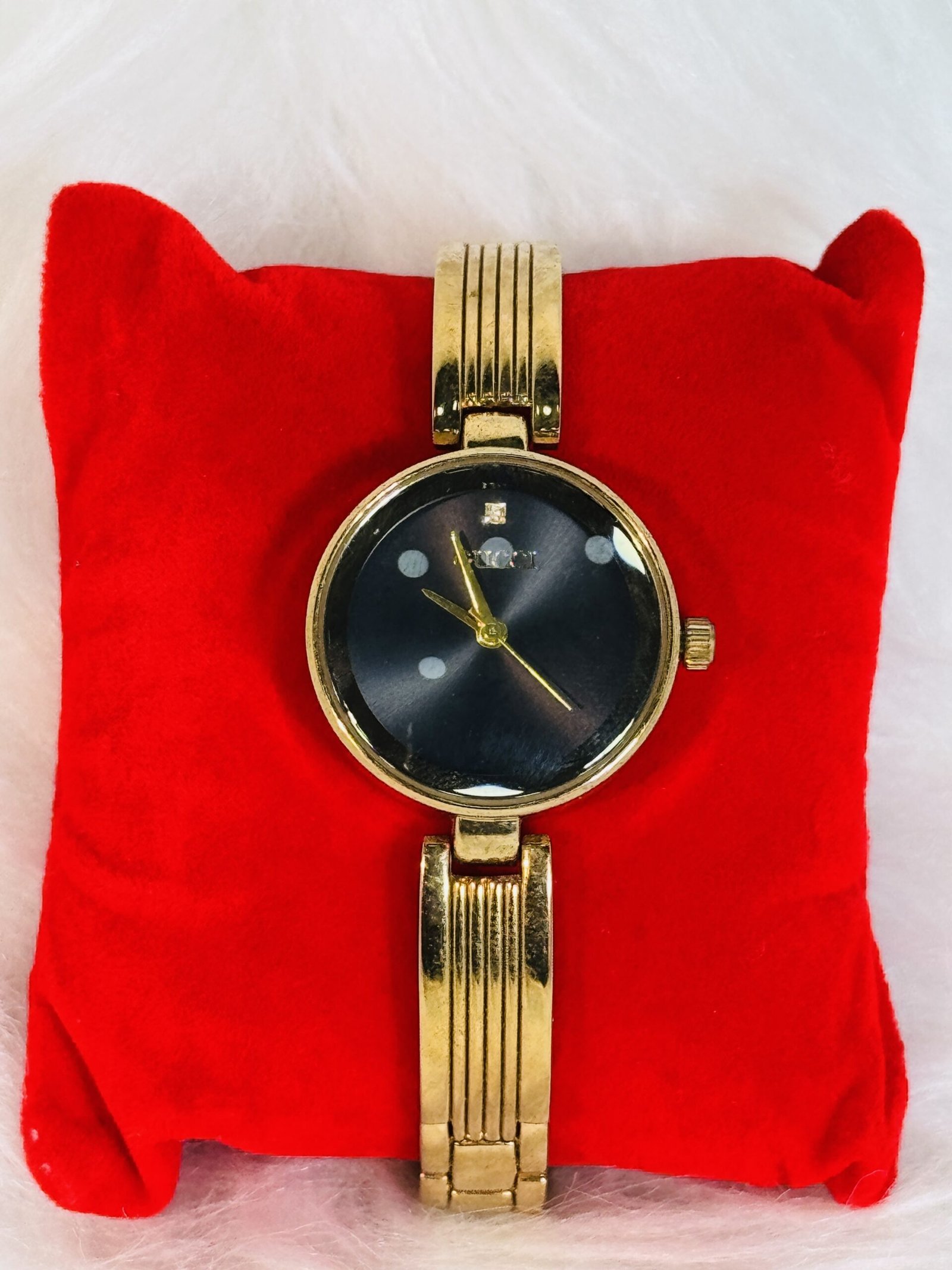 The black round plain screen exudes understated elegance, providing a sleek backdrop for the golden rotation hands that glide seamlessly. These details are paired with golden sides, completing a harmonious design that radiates opulence. The wristwatch not only prioritizes style but also ensures remarkable functionality, making it the perfect companion for anyone seeking sophistication and precision in timekeeping.