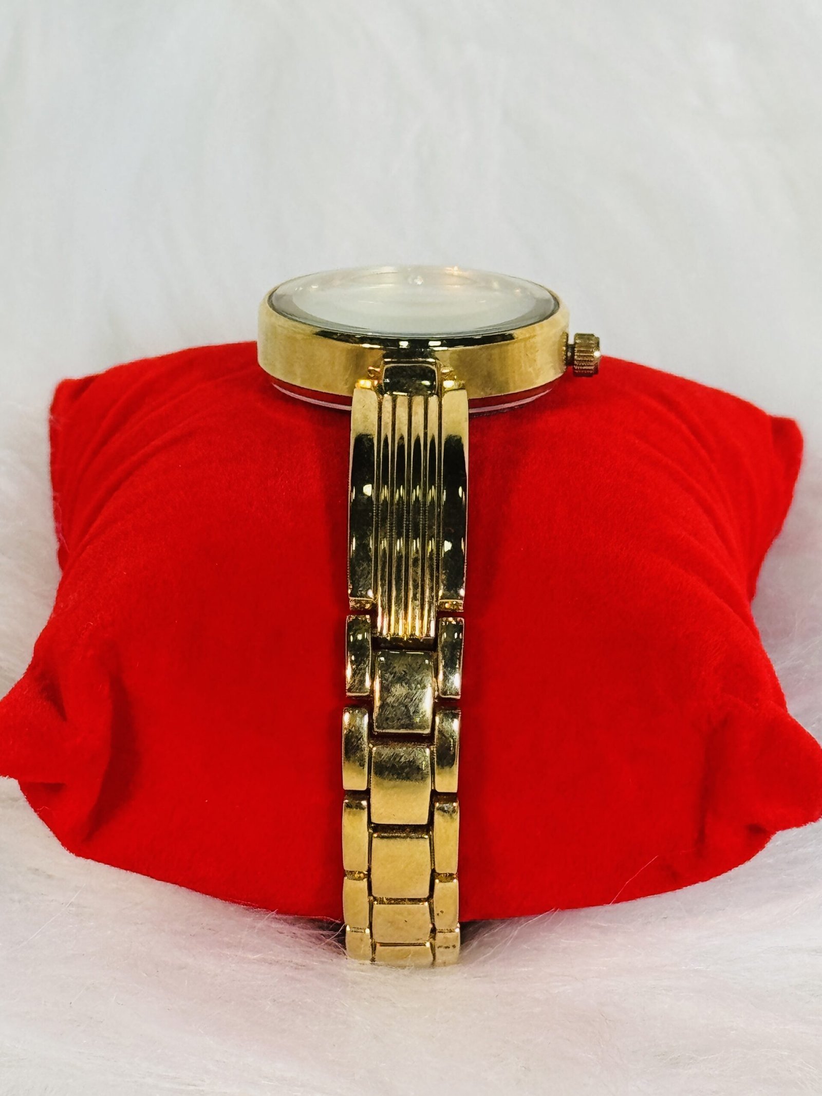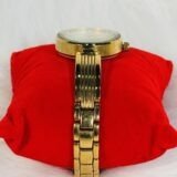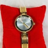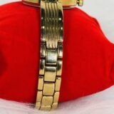 This wristwatch boasts a lined plain and chain golden strap that feels as premium as it looks. The combination of durability and comfort makes this watch perfect for day-to-day wear or special occasions. Its silver, round, plain screen provides a minimalist touch, while golden sides and rotation hands add a hint of opulence. Every aspect of this timepiece reflects Gucci’s unparalleled attention to detail, ensuring you get a product that’s stylish, durable, and versatile.