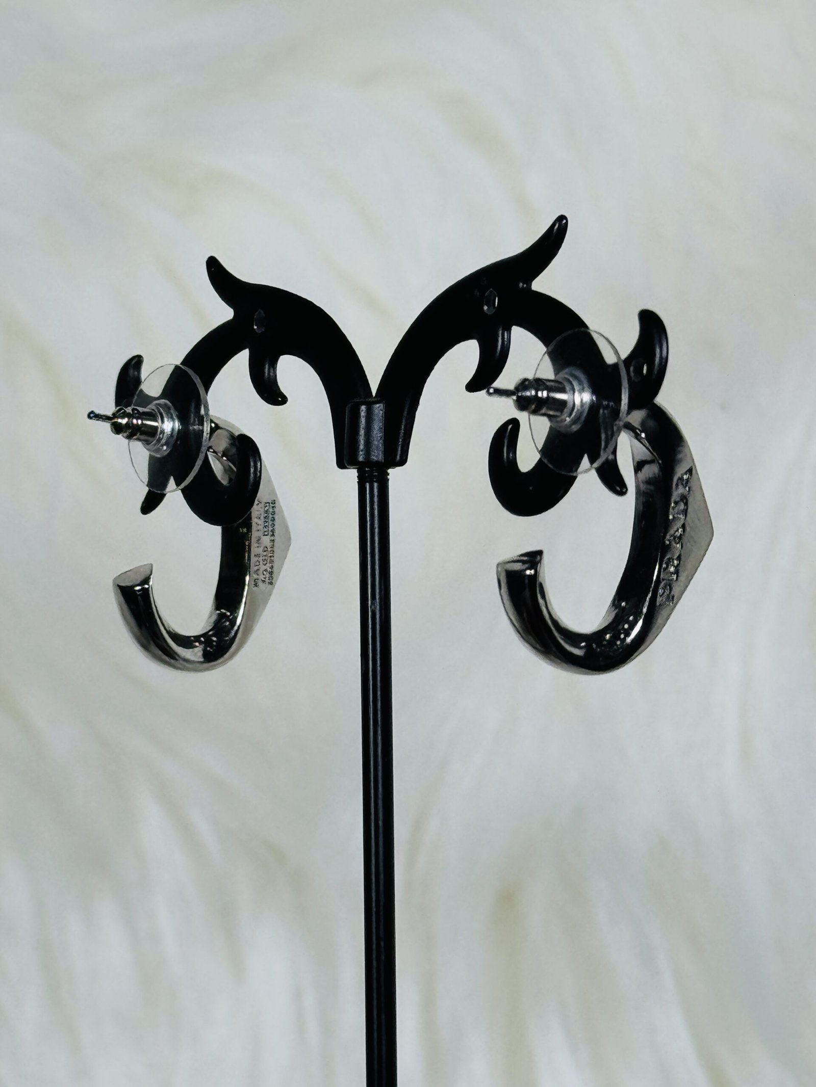 Introducing the Half Triangular Loop Silver Prada Earrings—an exquisite expression of elegance for those who appreciate refined craftsmanship and modern aesthetics. Prada, synonymous with high fashion and luxury, brings timeless allure to everyday accessories with this unique pair of earrings.