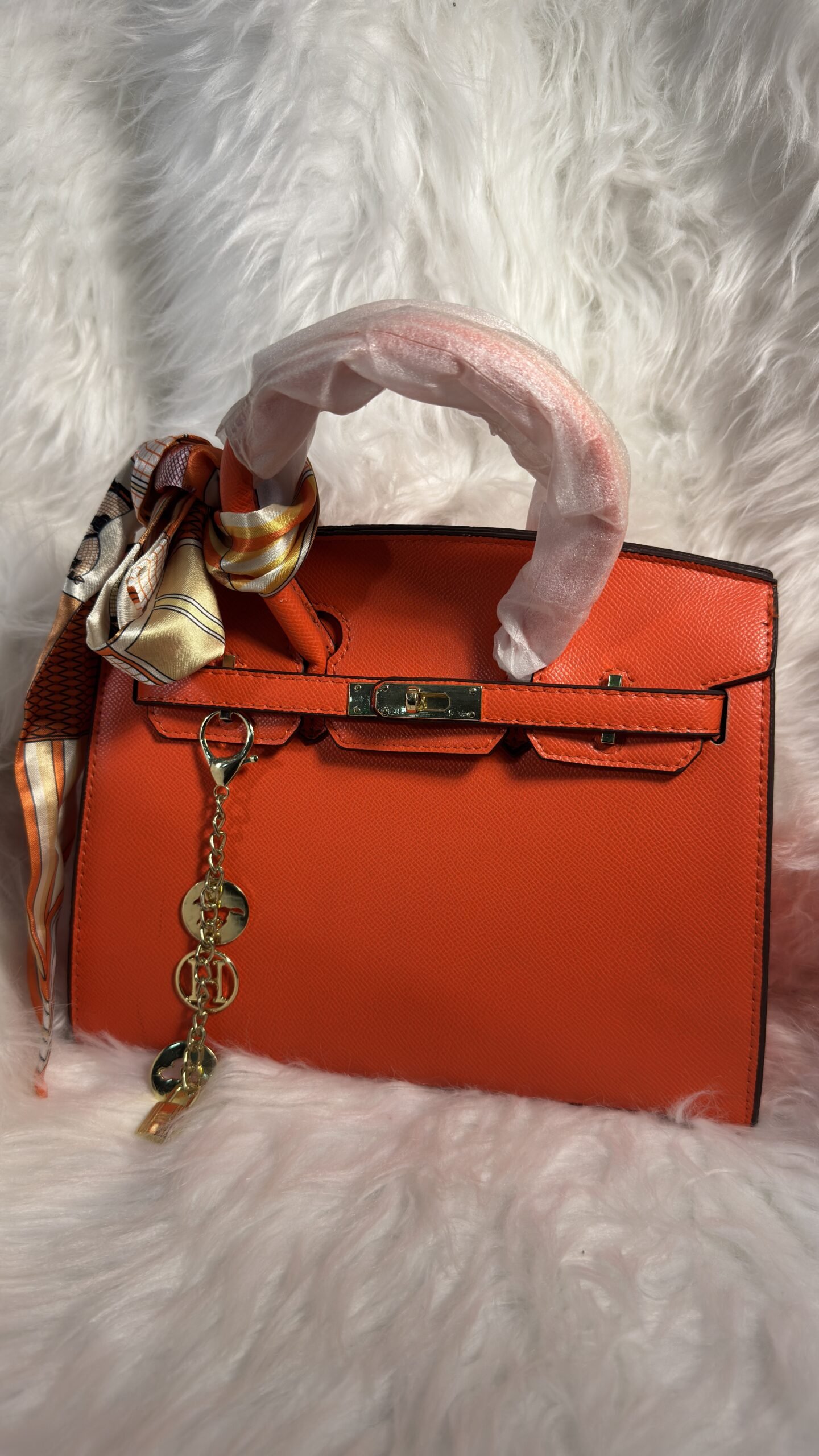 Discover the ultimate in sophistication with the fully boxed luxury Hermes orange leather bag. Expertly crafted with premium leather, this timeless accessory embodies elegance and superior quality that complements any wardrobe.