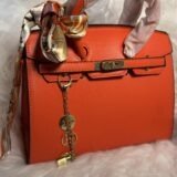The striking orange hue of the bag is a signature Hermes style, designed to make a statement wherever you go. It features a spacious interior and carefully curated compartments, providing practicality without sacrificing its luxurious appeal.