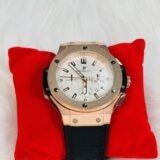 Whether you’re gifting it to someone special or upgrading your own watch collection, the Hublot Geneve black leather strap with a white screen, three functional small clocks, and striking details is a symbol of excellence in design and craftsmanship. Make time your most stylish asset today.