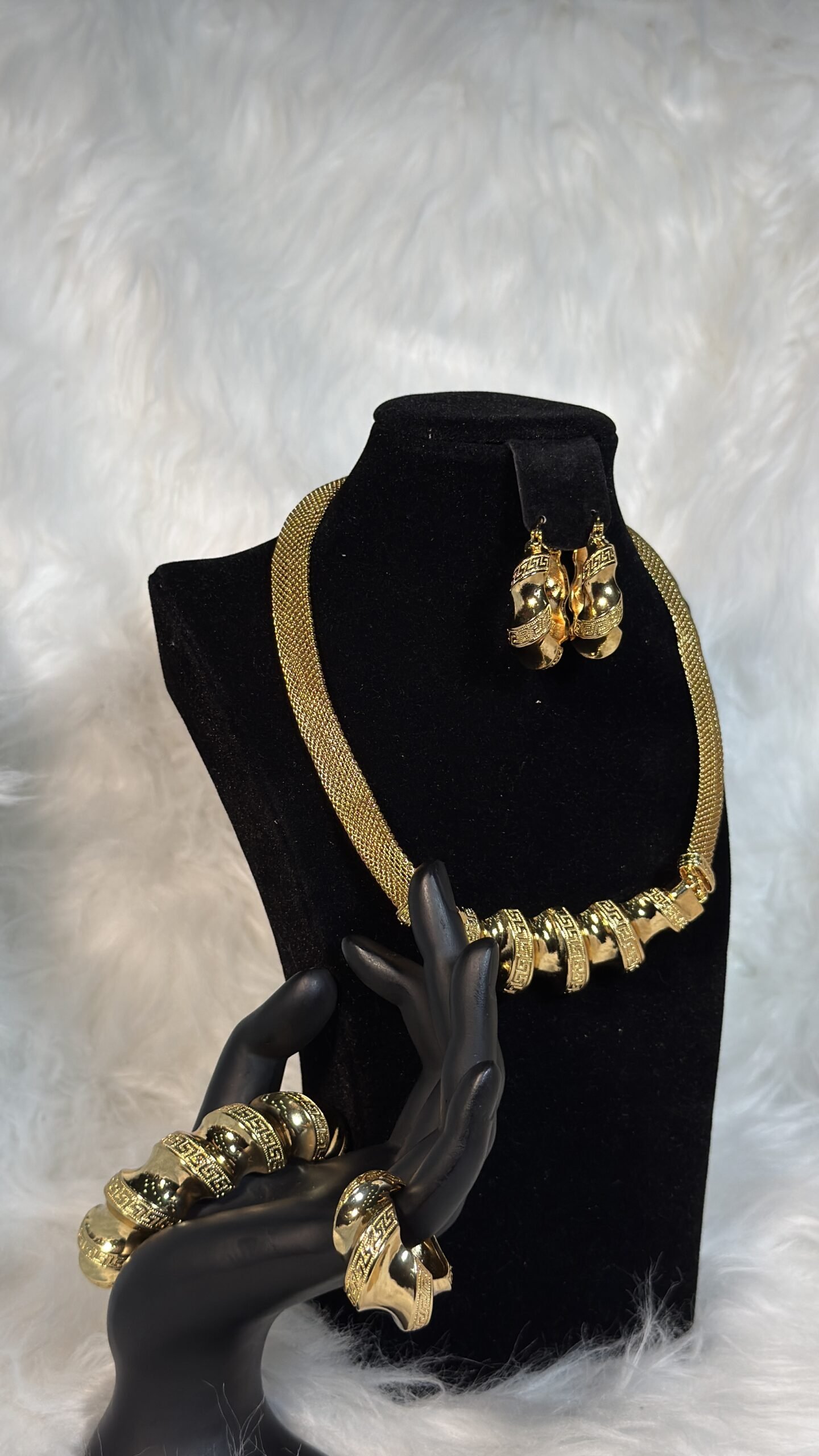 This two-piece set boasts flawless craftsmanship that captures the intricate designs inspired by Versace’s signature aesthetics. The necklace and earrings are meticulously crafted to replicate the brilliance, texture, and style of genuine Italian gold. Whether worn together or individually, these pieces add depth and allure to your wardrobe, letting you enjoy the luxury you deserve at a fraction of the price.