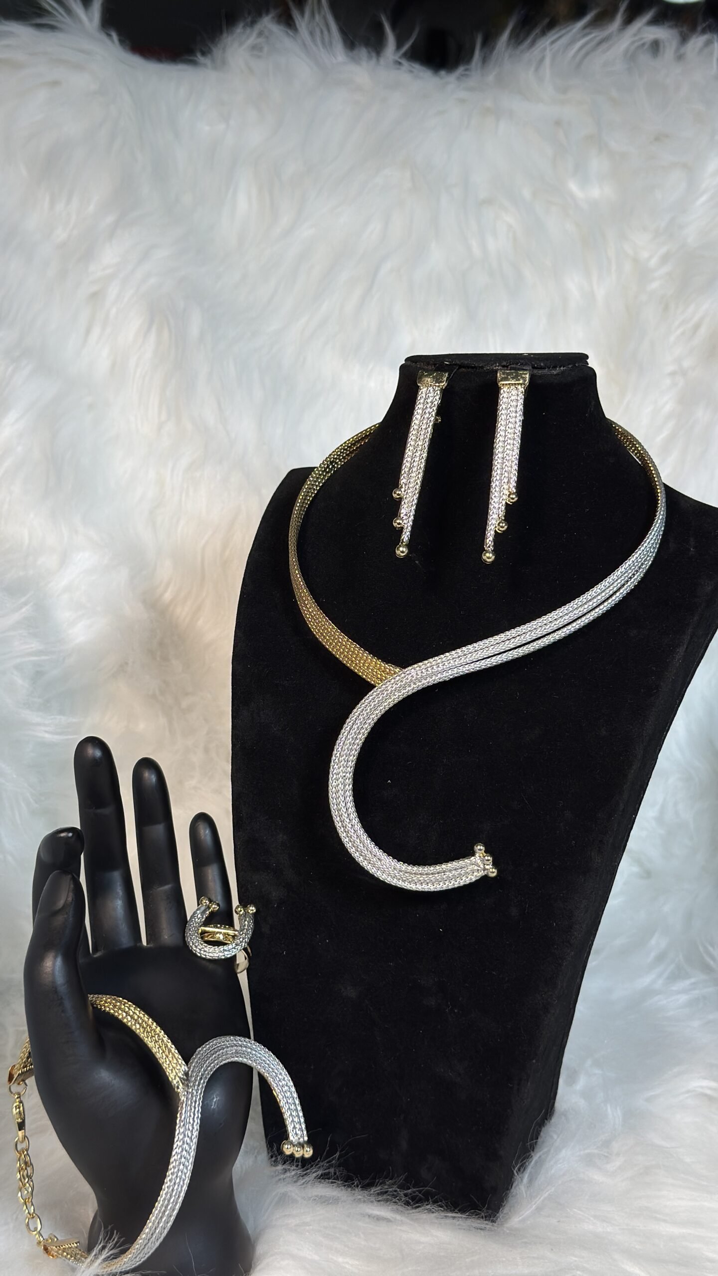 Available in an exclusive set of two pieces, priced at 35,000/45,000, this Italian Gold Replica figure 8 necklace offers incredible value. The gold and silver tones blend seamlessly, allowing it to pair beautifully with a variety of outfits—be it formal, casual, or traditional. The custom design elevates its appeal, ensuring you make a lasting impression wherever you go. Whether purchased for personal use or as a gift for someone special, this necklace exudes elegance and sophistication suitable for every occasion.