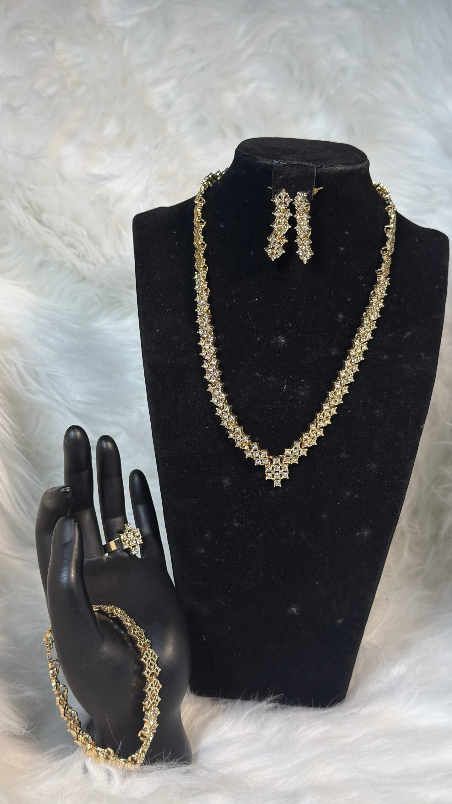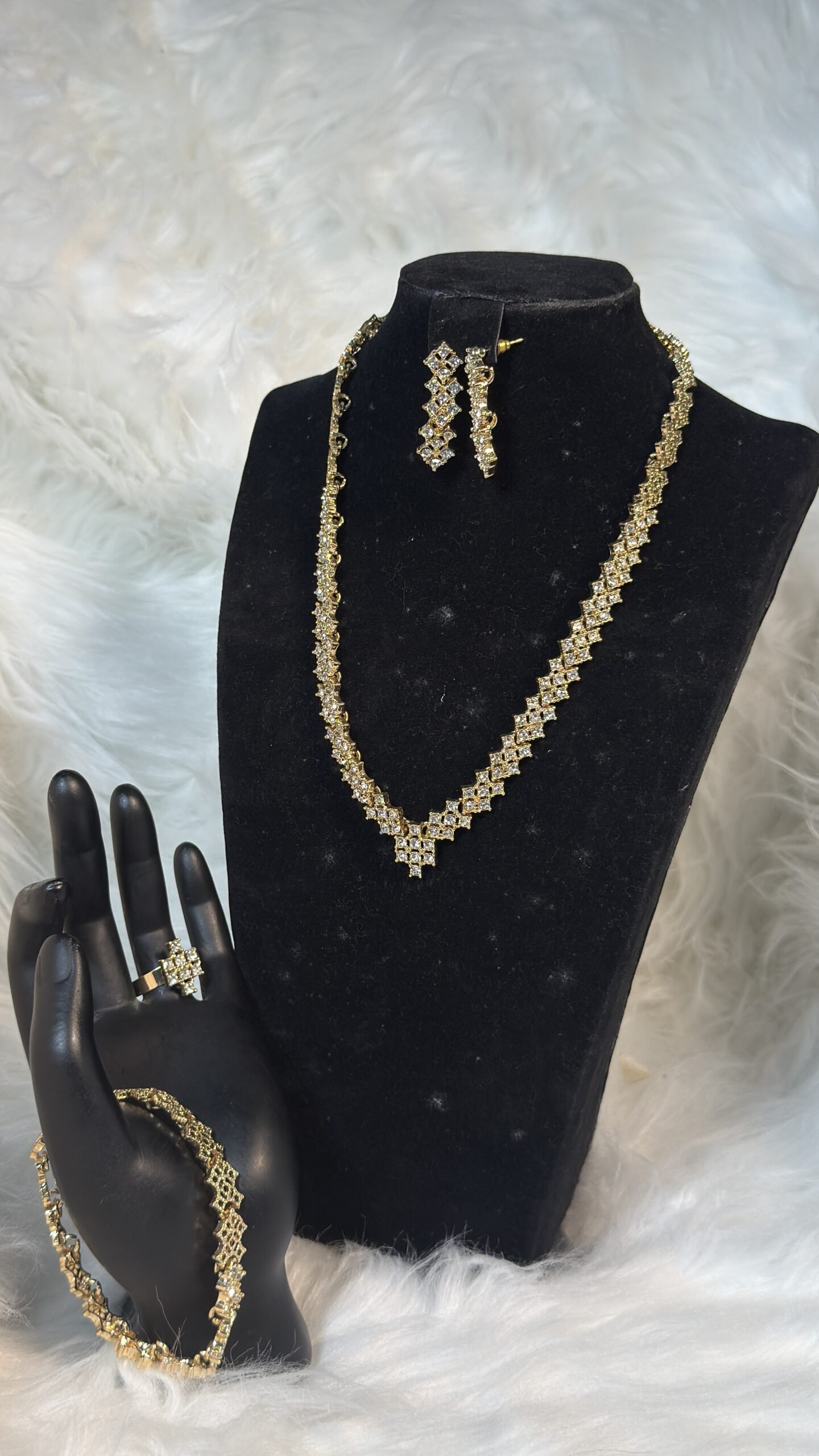 This 1-piece set is designed to cater to customers who value both style and substance. Offered at a competitive price of 30,000/40,000, it brings undeniable charm and allure into your collection. The white stone embellishments not only amplify the aesthetic appeal but also reflect careful consideration of quality materials for long-lasting wear. With this jewelry set, you’re choosing durability combined with elegance in every detail.