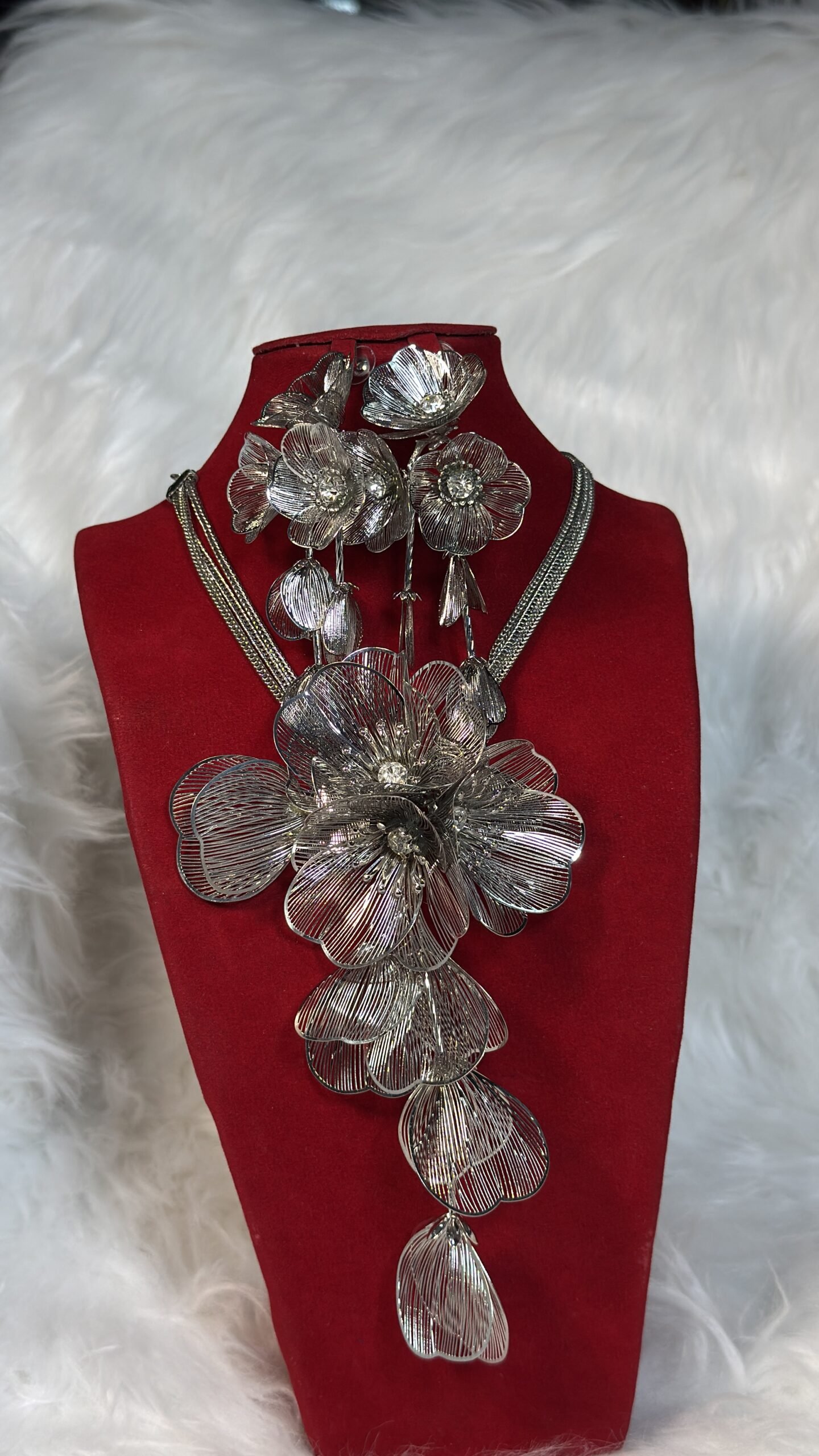 The necklace features an exquisite design that celebrates the artistry of Italian-inspired silverwork. The accompanying earrings complement the overall look, creating a harmonious and flawless combination. Each piece is crafted with precision to showcase the sparkle and sophistication silver is renowned for. Whether you’re dressing for a special occasion or adding a hint of luxury to your everyday attire, this custom silver set truly stands out.