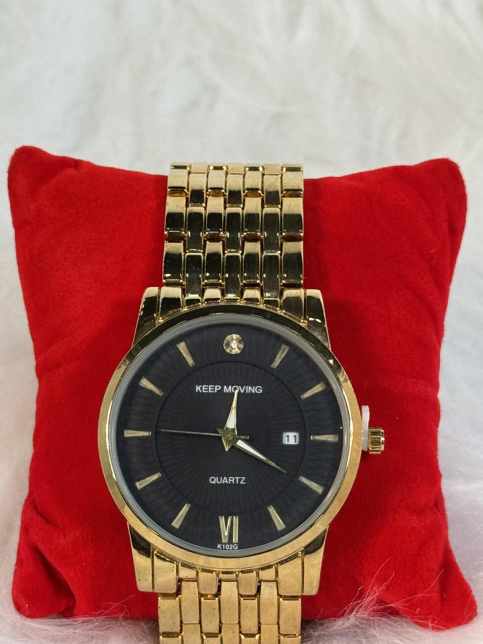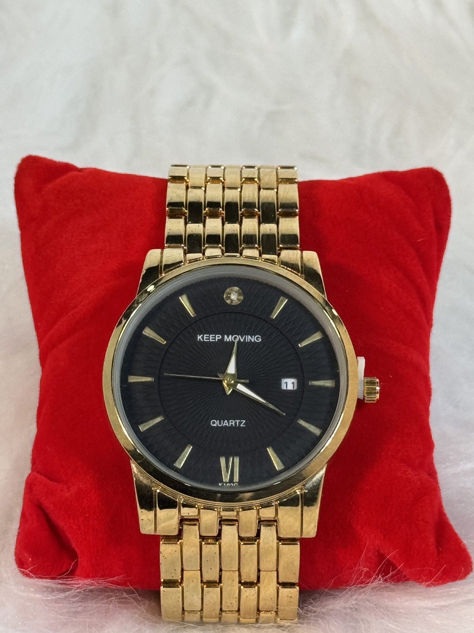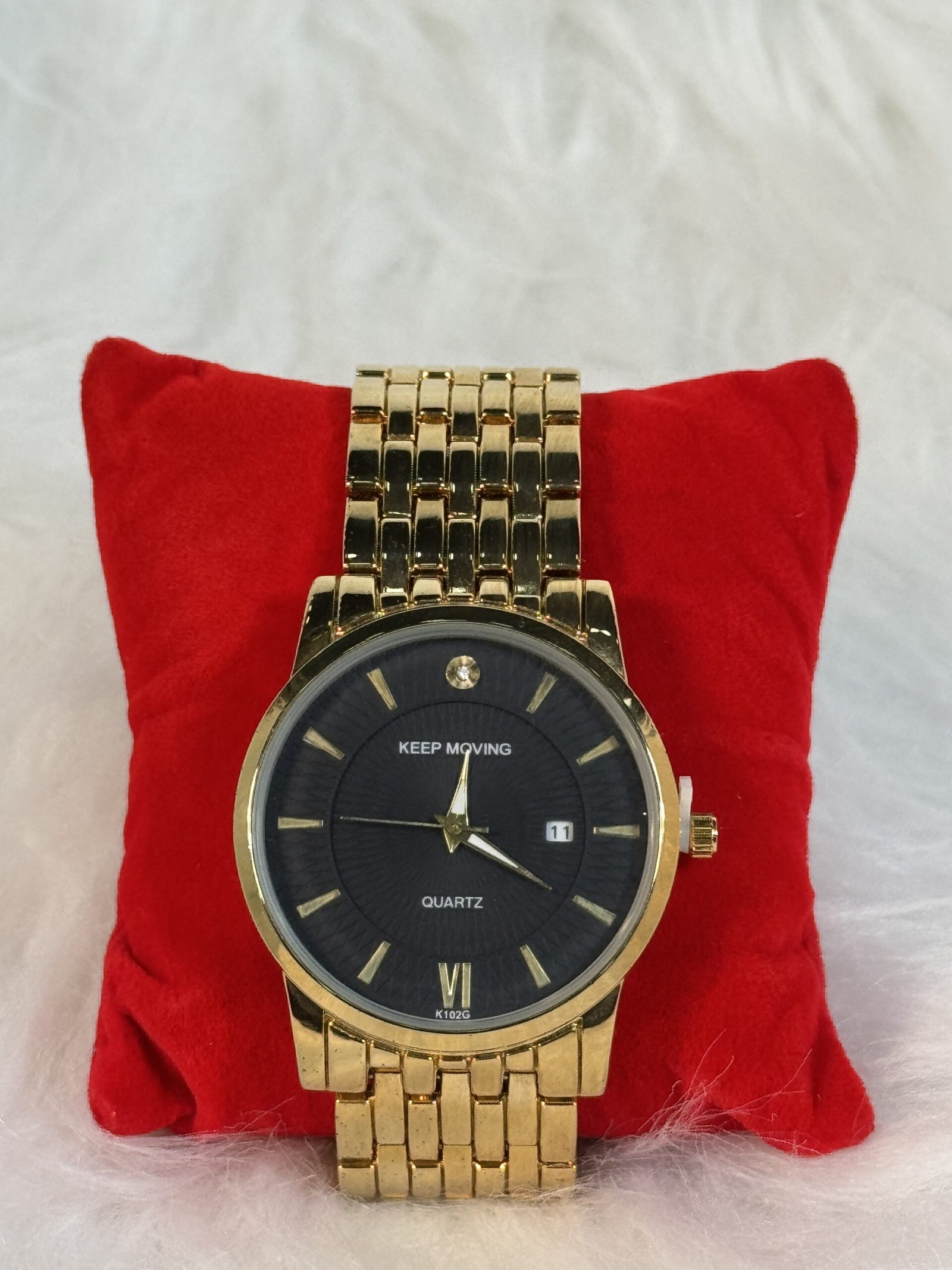 The golden sides of this wristwatch complete its distinct look, ensuring it stands out as a premium accessory. Designed for durability and reliable performance, the Keep Moving Wristwatch seamlessly combines aesthetic appeal and functionality. Whether you’re a watch enthusiast or looking for a sleek gift item, this wristwatch is the ultimate choice to keep time while elevating your personal style.