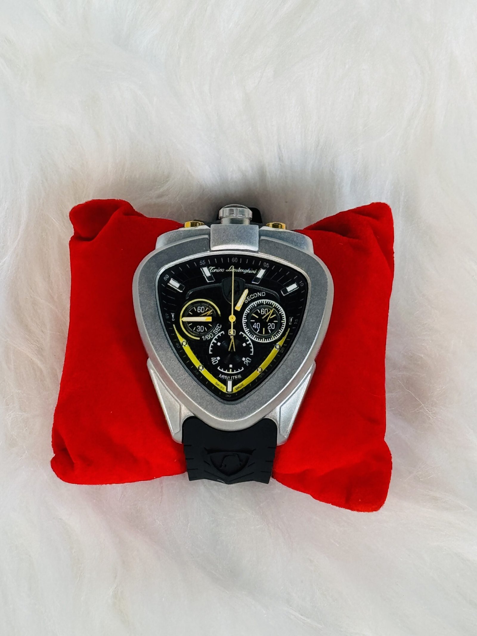 Step out in style and make a statement with the Lamborghini wristwatch. Its exceptional details, such as the three clocks and the intricate yellow linings, make it more than just a watch—it’s a reflection of your unique style and personality. Ideal for those who appreciate high-quality materials and iconic designs, this watch is perfectly suited for both daily wear and special occasions.