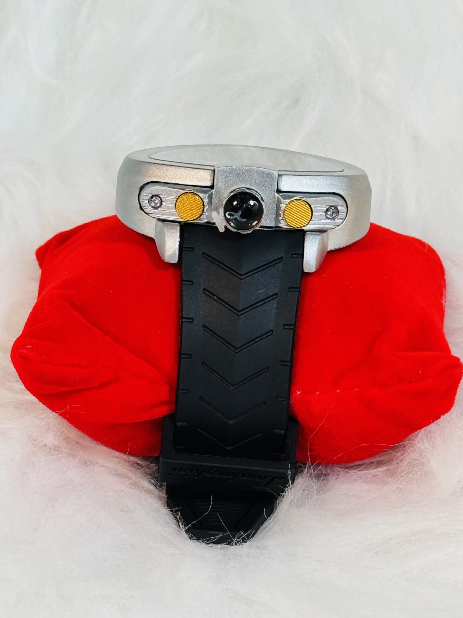 Exude confidence with the Lamborghini wristwatch, designed with silver bold sides that embrace a blend of resilience and luxury. This watch truly stands out with its gold and black trio of buttons, providing a functional yet visually appealing accent to the watch’s bold design. Whether you’re at a formal event or a casual outing, this wristwatch elevates your look to new heights, embodying the perfect marriage of performance and prestige.